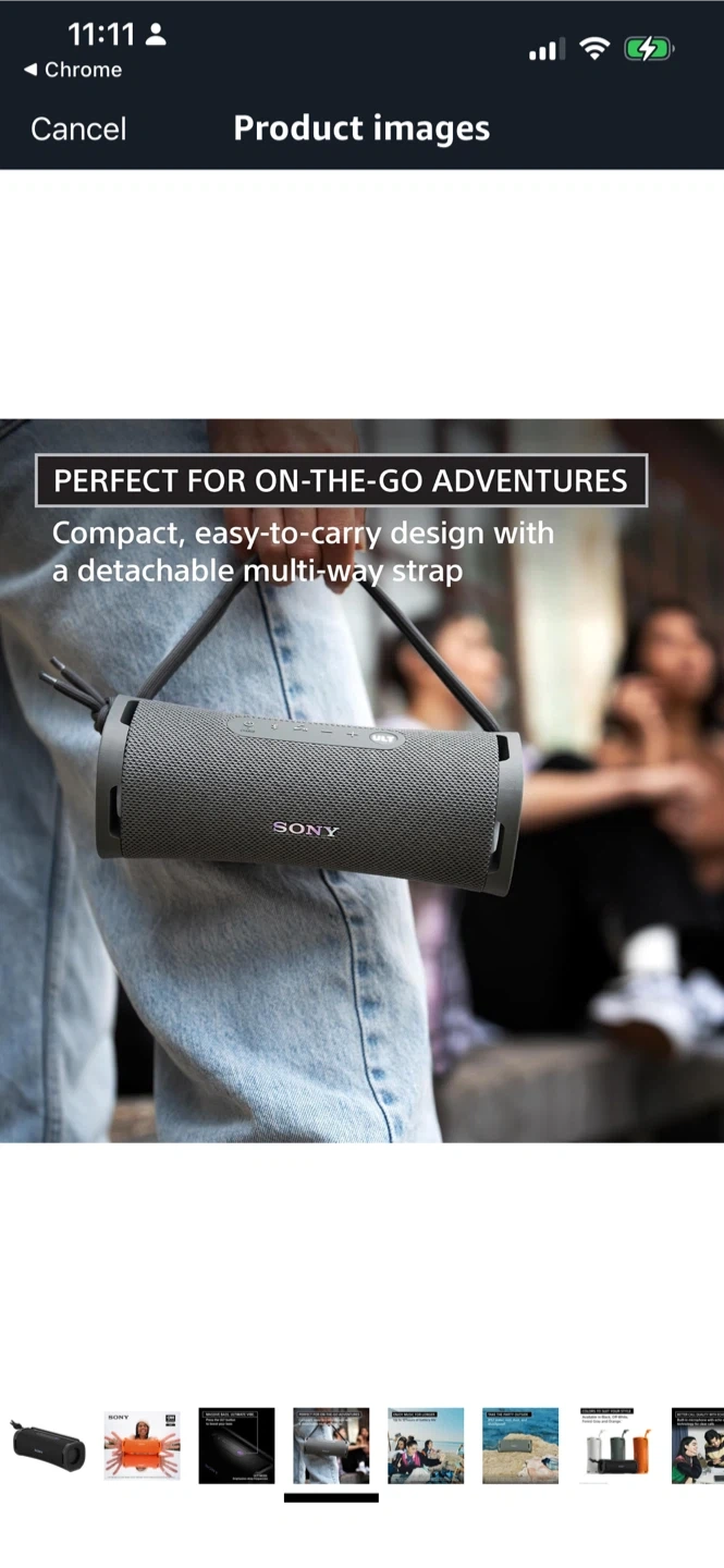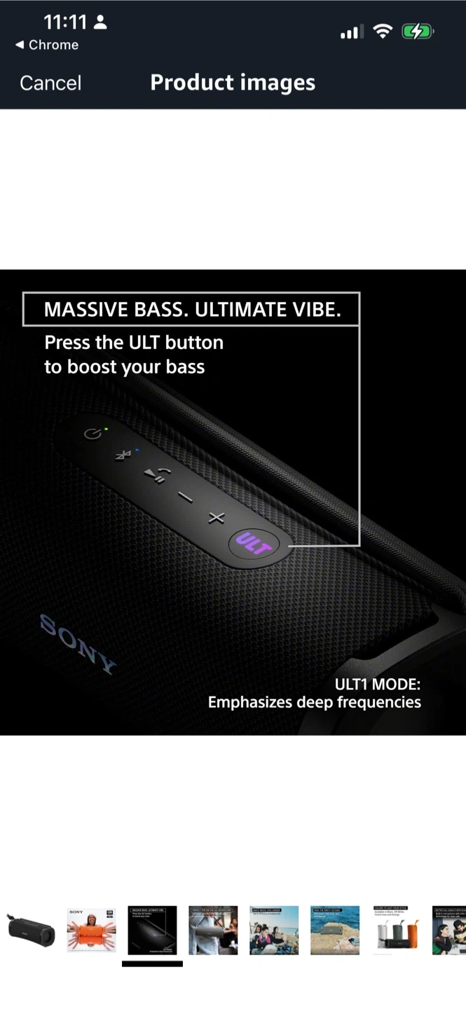 This Sony portable Bluetooth speaker offers massive bass and ultimate vibe with its ULT button. It's IP67 water, rust, and dustproof, perfect for outdoor adventures. Enjoy music for up to 12 hours of battery life. It features a compact, easy-to-carry design with a detachable multi-way strap.