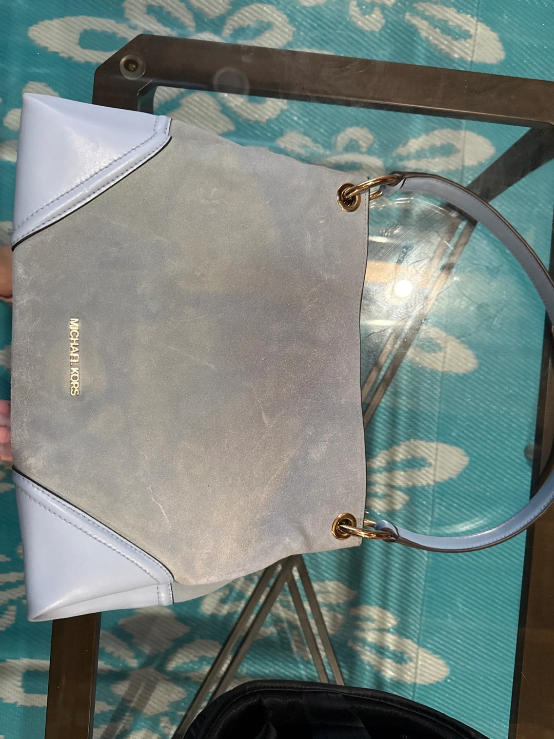 Michael Kors Light Blue Suede Shoulder Bag
