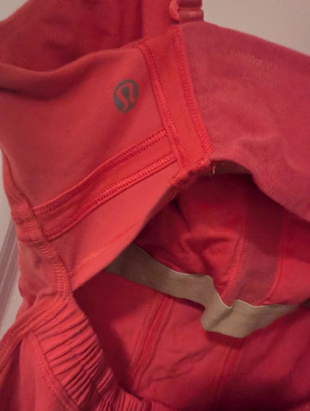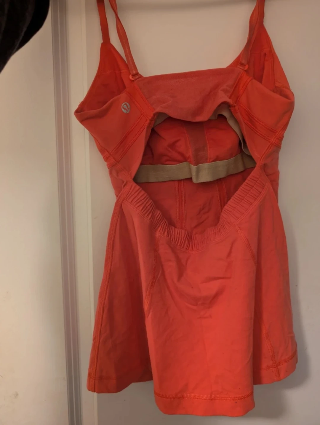 Coral Lululemon tank top with built-in bra. Strappy back design. Great for workouts or casual wear. Size small/medium about a 6