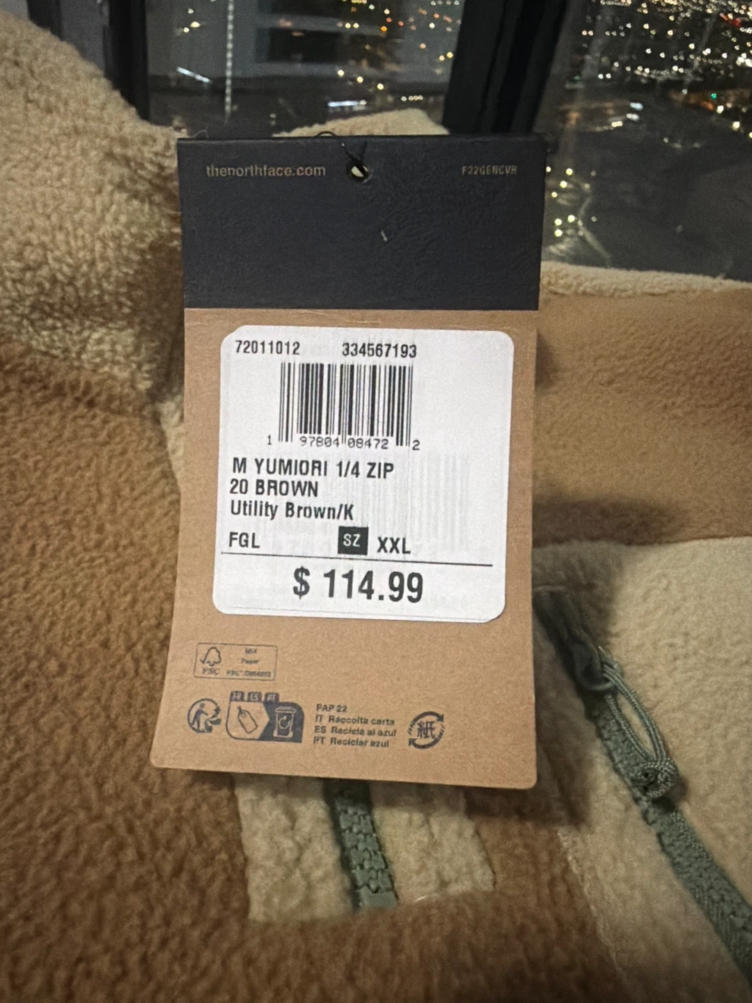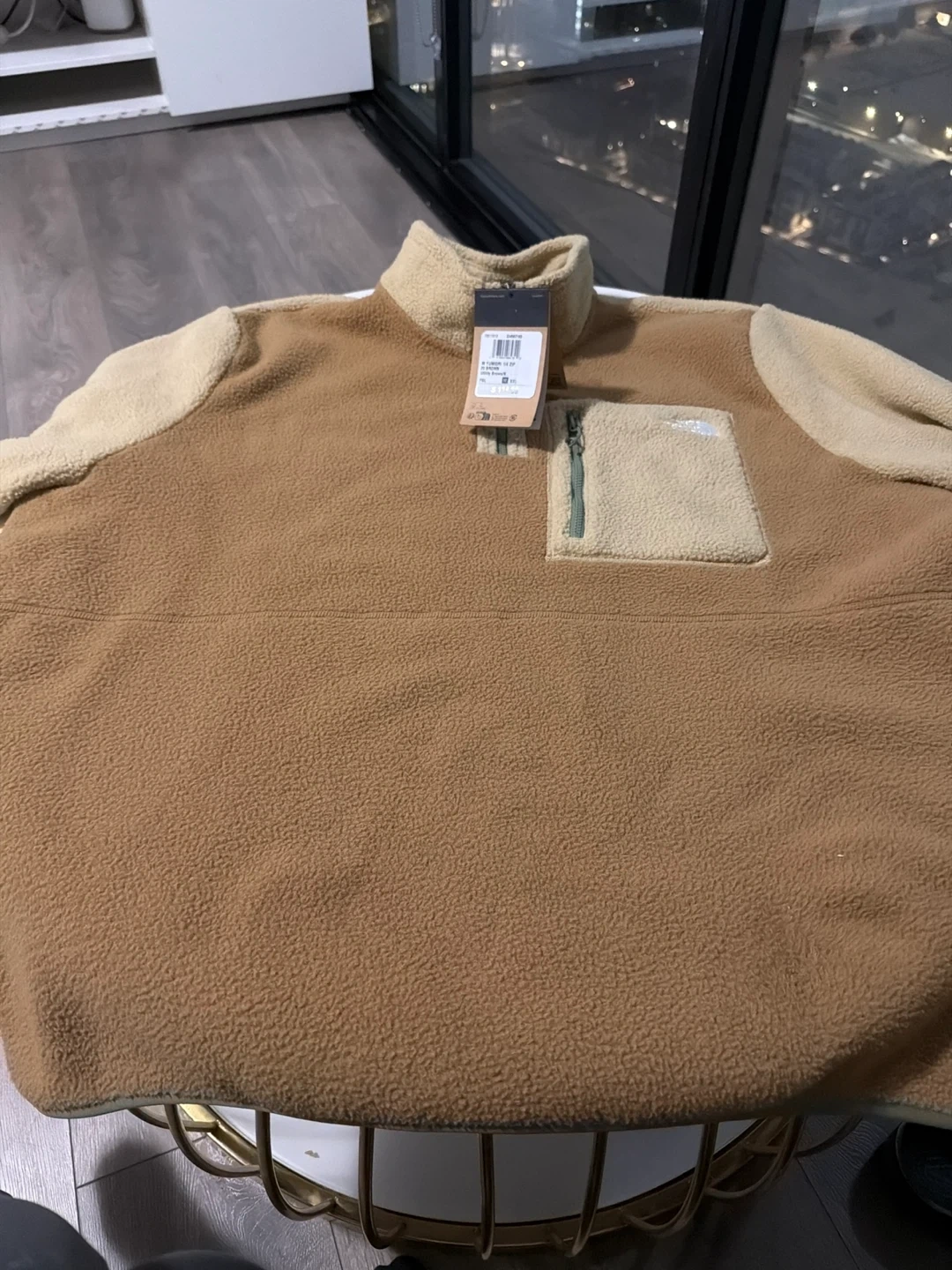 This is The North Face M Yumi_ori 1/4 Zip pullover. It's a Size XXL in the colour Utility Brown/K. This fleece jacket is perfect for staying warm on cooler days.
