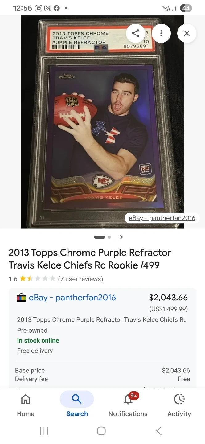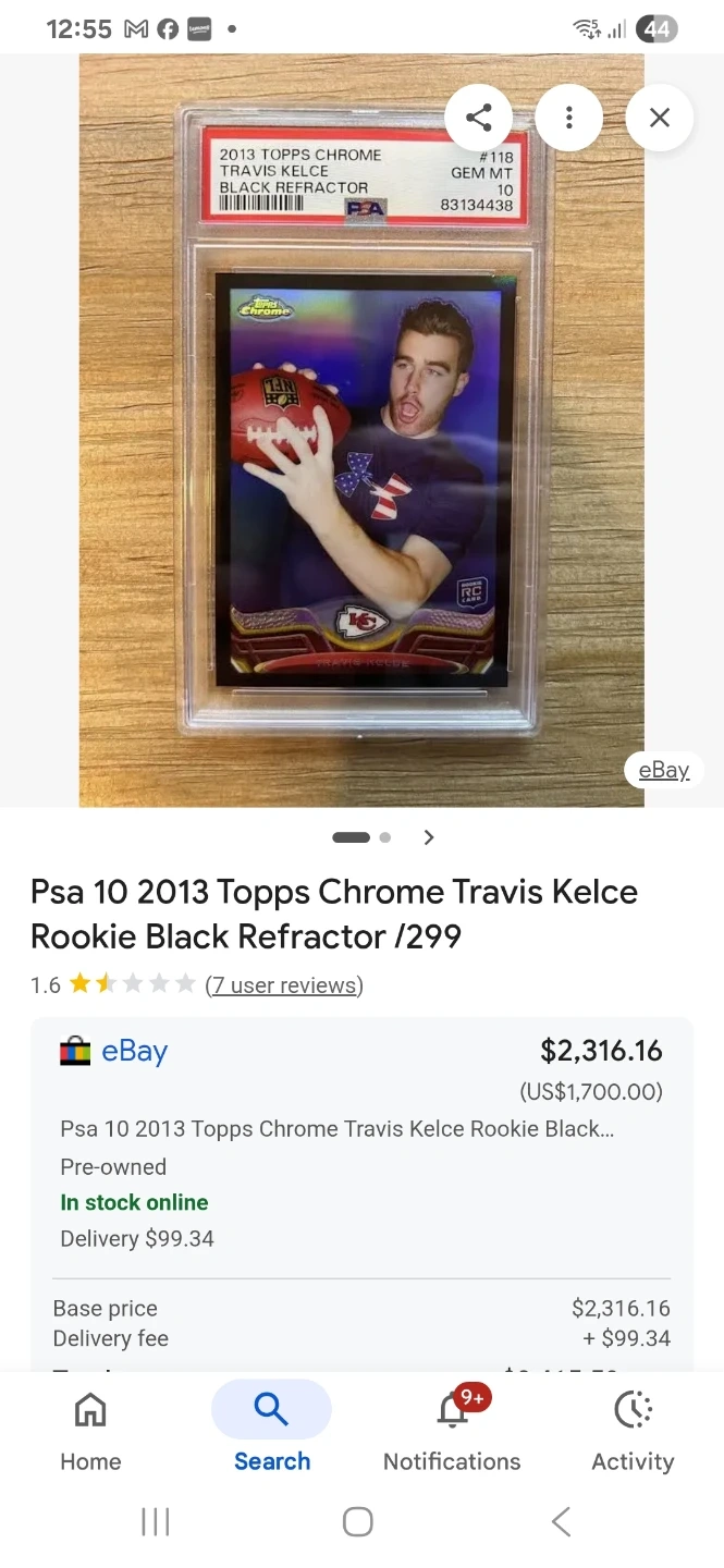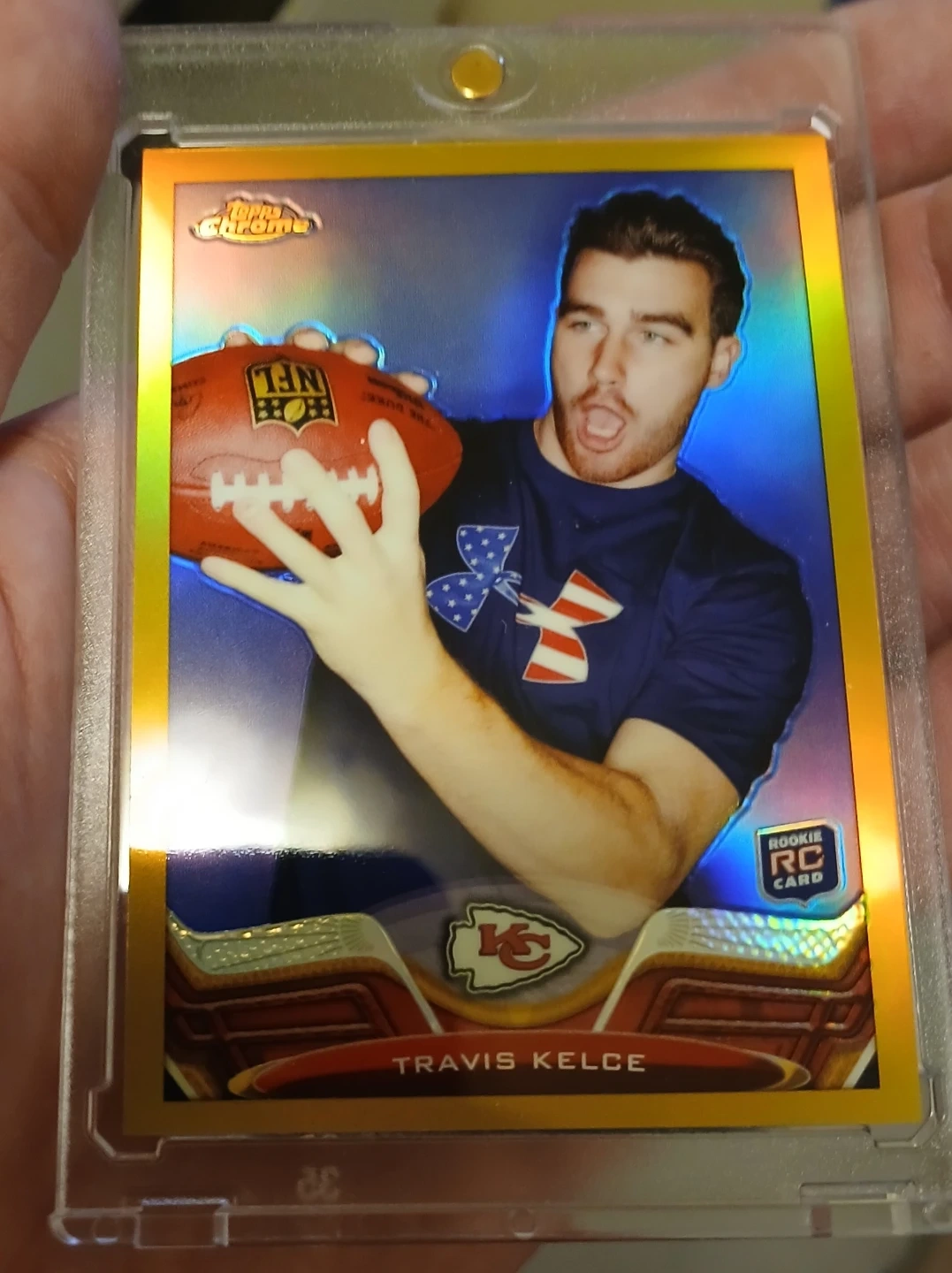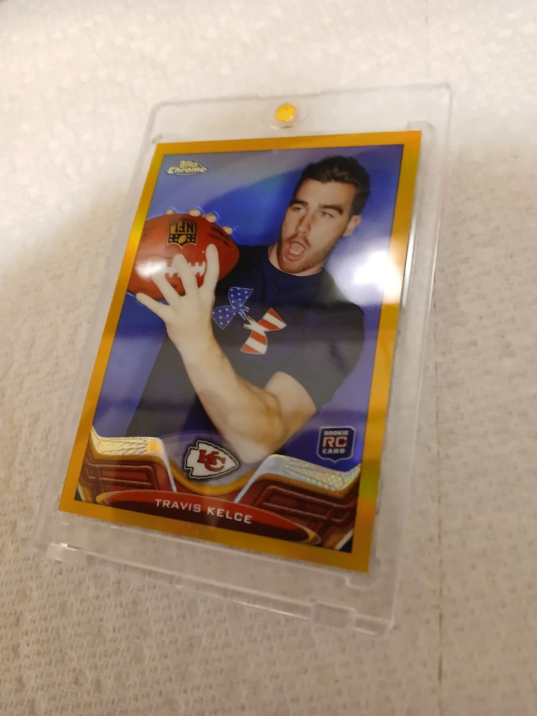 Buy & SellTopps Chrome Travis Kelce Rookie RC CardTopps Chrome Travis Kelce Rookie RC Card$4,000This is a Topps Chrome Travis Kelce Rookie RC card. It's a refractor with a gold finish. The card showcases his college career stats. #d /50 Sp.ConditionNewWHERE TO MEETCheck LocationView MapSELLERverifiedTimWestney Heights600 reviews0 chats·0 favorites·10 viewsSEND CHAT TO SELLERHi Tim! I’m interested in your listing.Hi Tim! I’m interested in your listing.Get the Karrot app to chatSign In to chat
