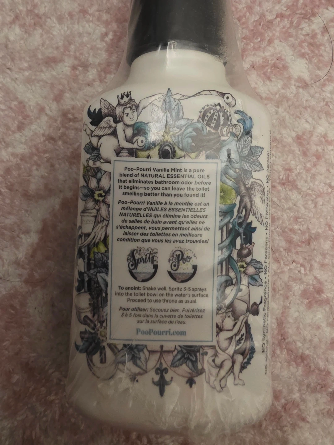 Poo-Pourri Vanilla Mint Before-You-Go Toilet Spray eliminates bathroom odour before it begins! It's a pure blend of natural essential oils. 118 mL bottle.