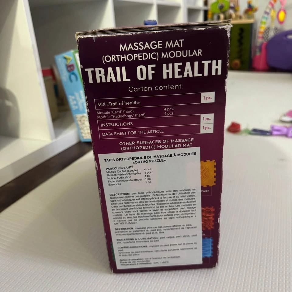 This brand new, open box Ortho Puzzle modular orthopedic massage mat is designed to support foot health, balance, and sensory stimulation. It's suitable for both children and adults. The interlocking textured mats feature different surfaces for massage and proprioceptive input. Selling because I have two sets and don’t need the extra. From a smoke-free home. Pick up in Richmond Hill.