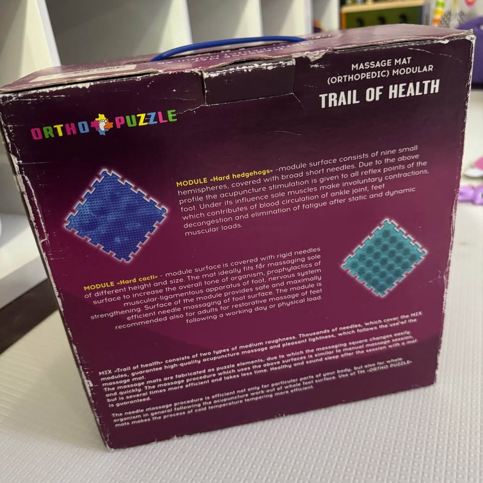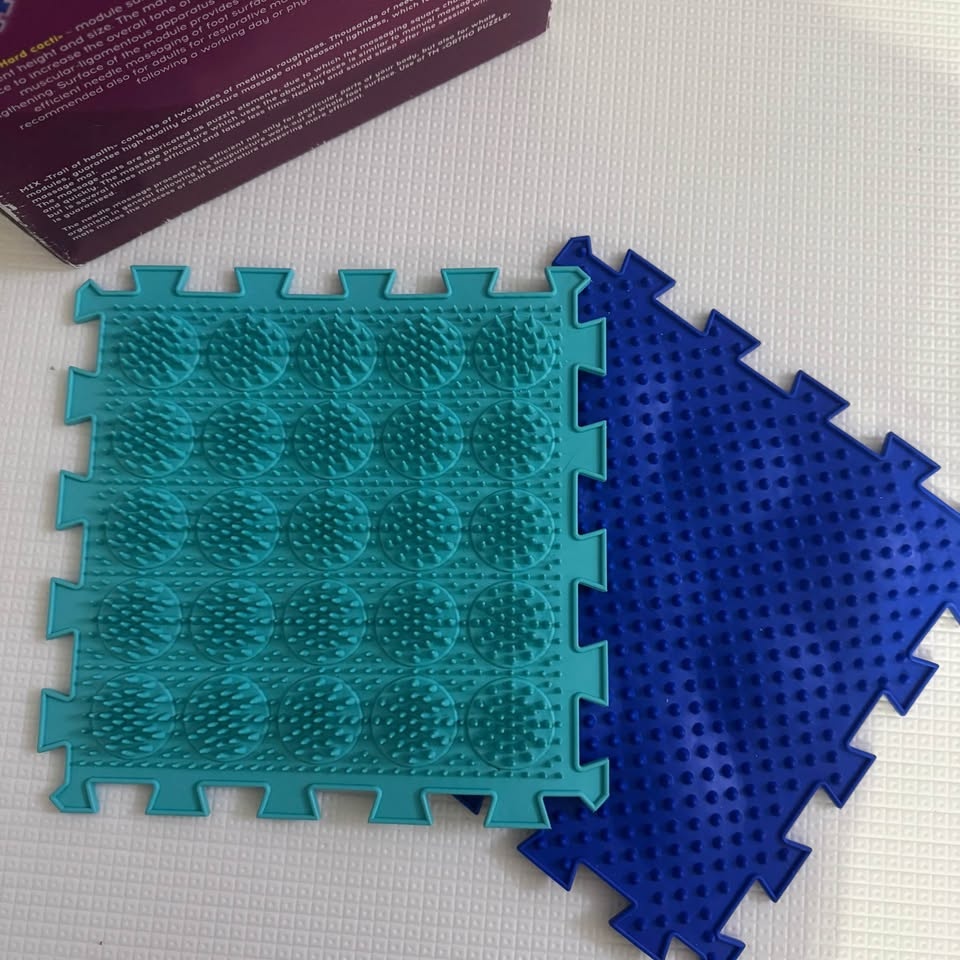 This brand new, open box Ortho Puzzle modular orthopedic massage mat is designed to support foot health, balance, and sensory stimulation. It's suitable for both children and adults. The interlocking textured mats feature different surfaces for massage and proprioceptive input. Selling because I have two sets and don’t need the extra. From a smoke-free home. Pick up in Richmond Hill.