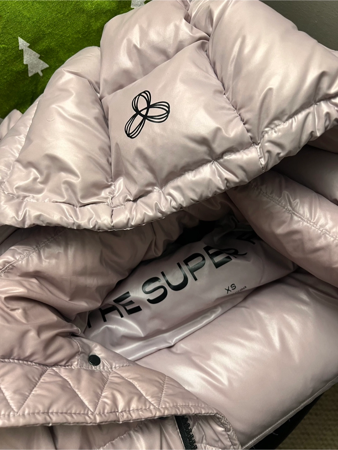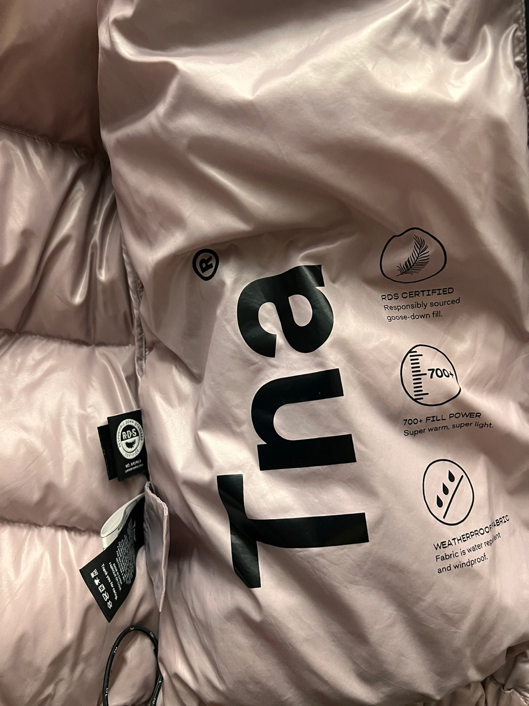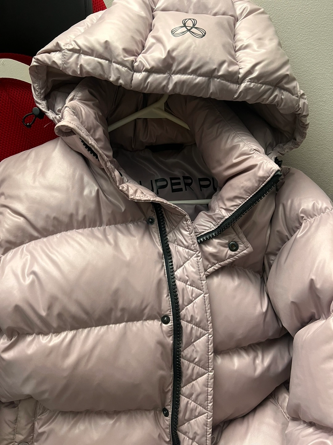 Worn a handful times still In good condition. Color looks light ping in person. Detachable hood