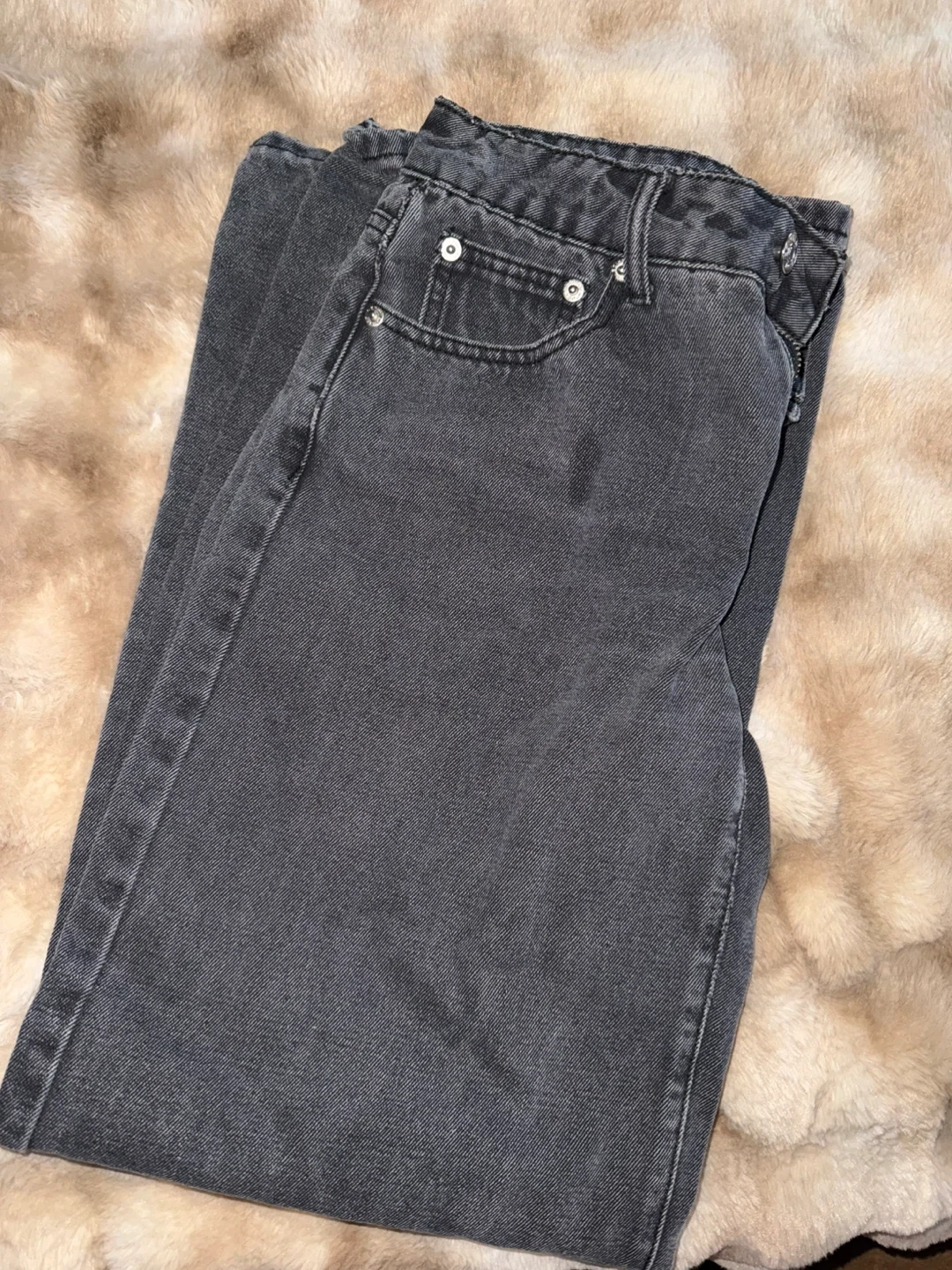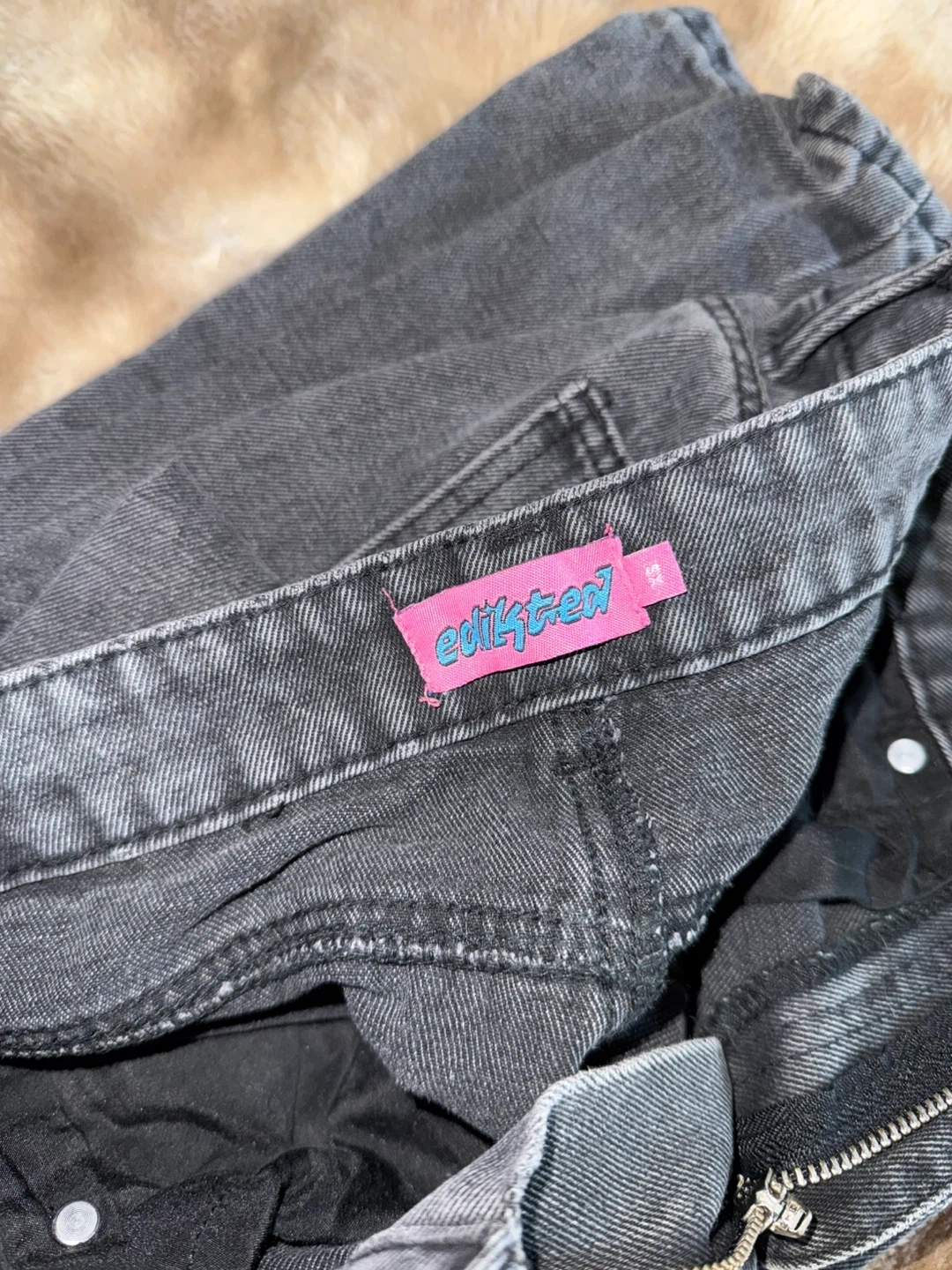 These Edikted jeans are a charcoal wash with a high-waisted, wide-leg fit. They're made from denim. These jeans are great for casual wear.