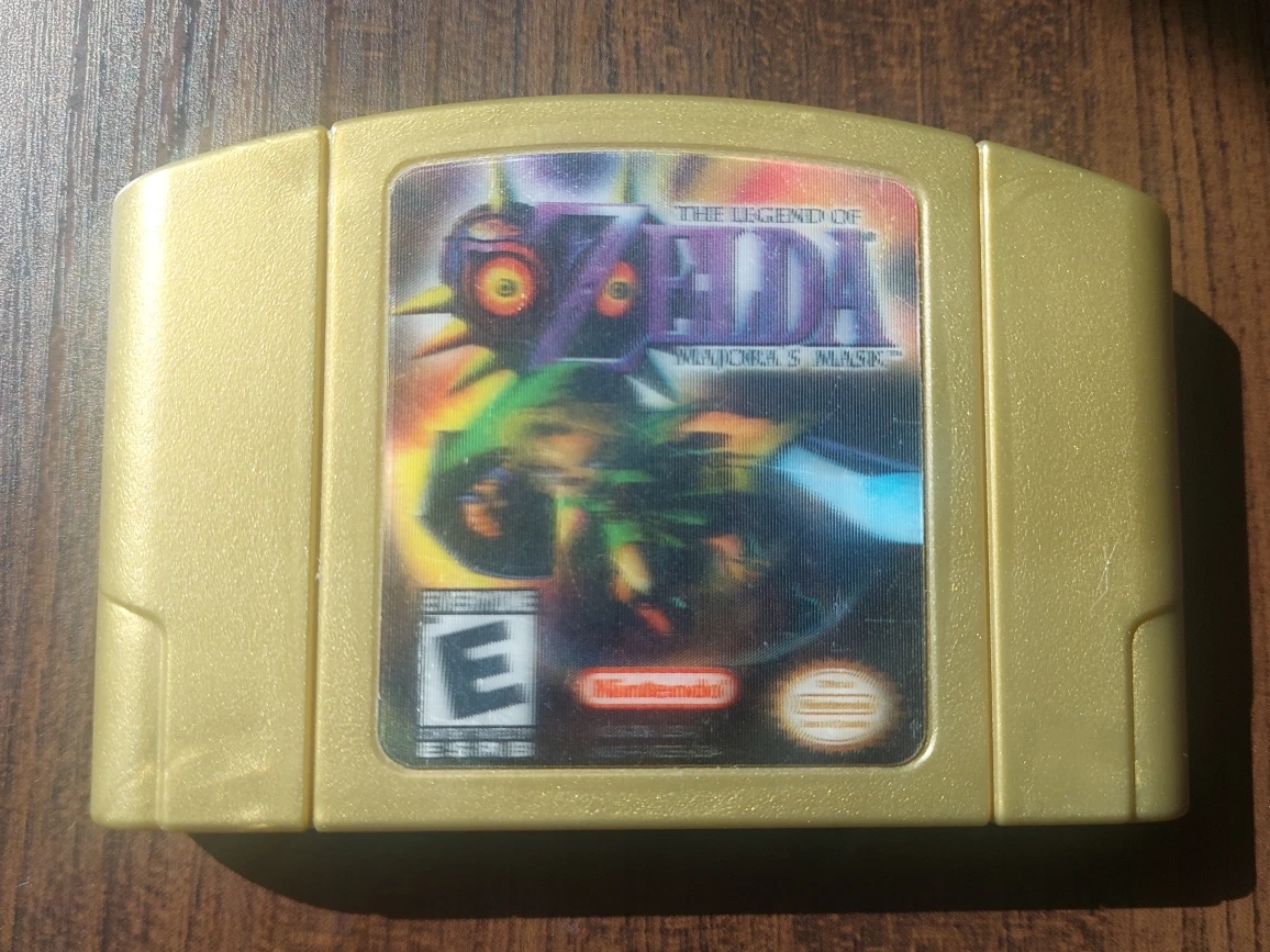 • The Legend of Zelda: Majora's Mask: Gold Cartridge with Holographic Label, authentic "08" factory stamp on back.