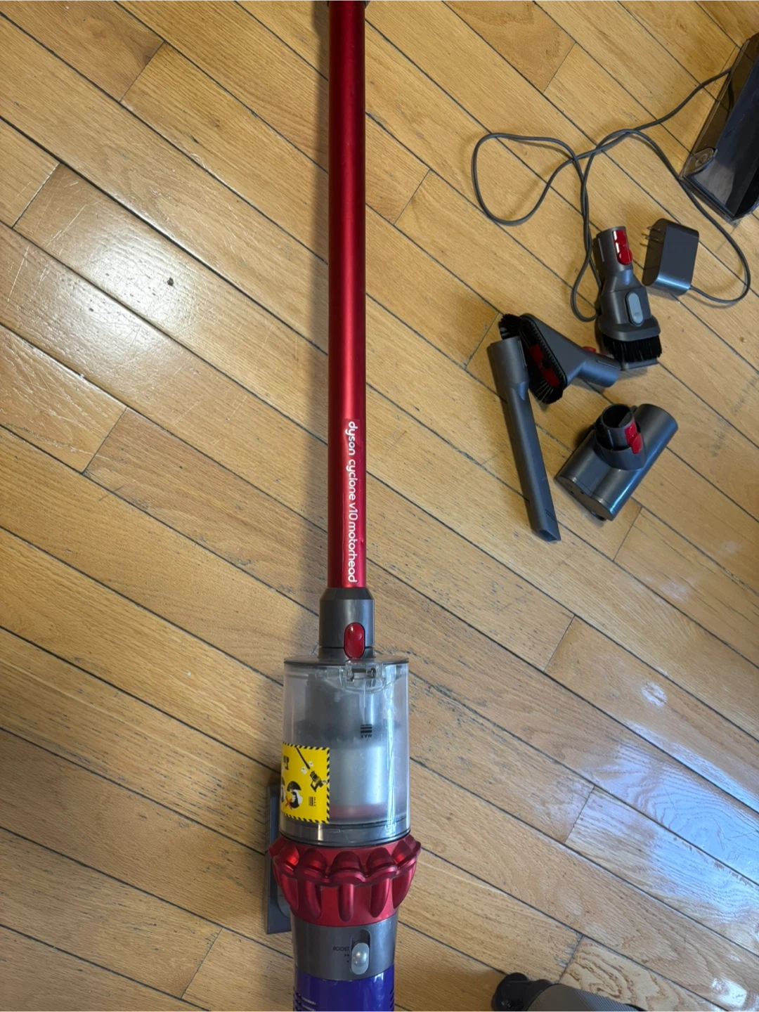 Selling a Dyson Cyclone V10 Motorhead vacuum cleaner. It's in great shape and ready to help keep your place tidy! Comes with all the attachments you see in the pictures.price is negotiable but there is a minor crack don’t affect any problem when using it