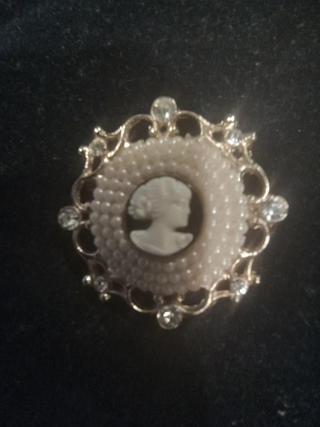 Coro Cameo Brooch with Rhinestones