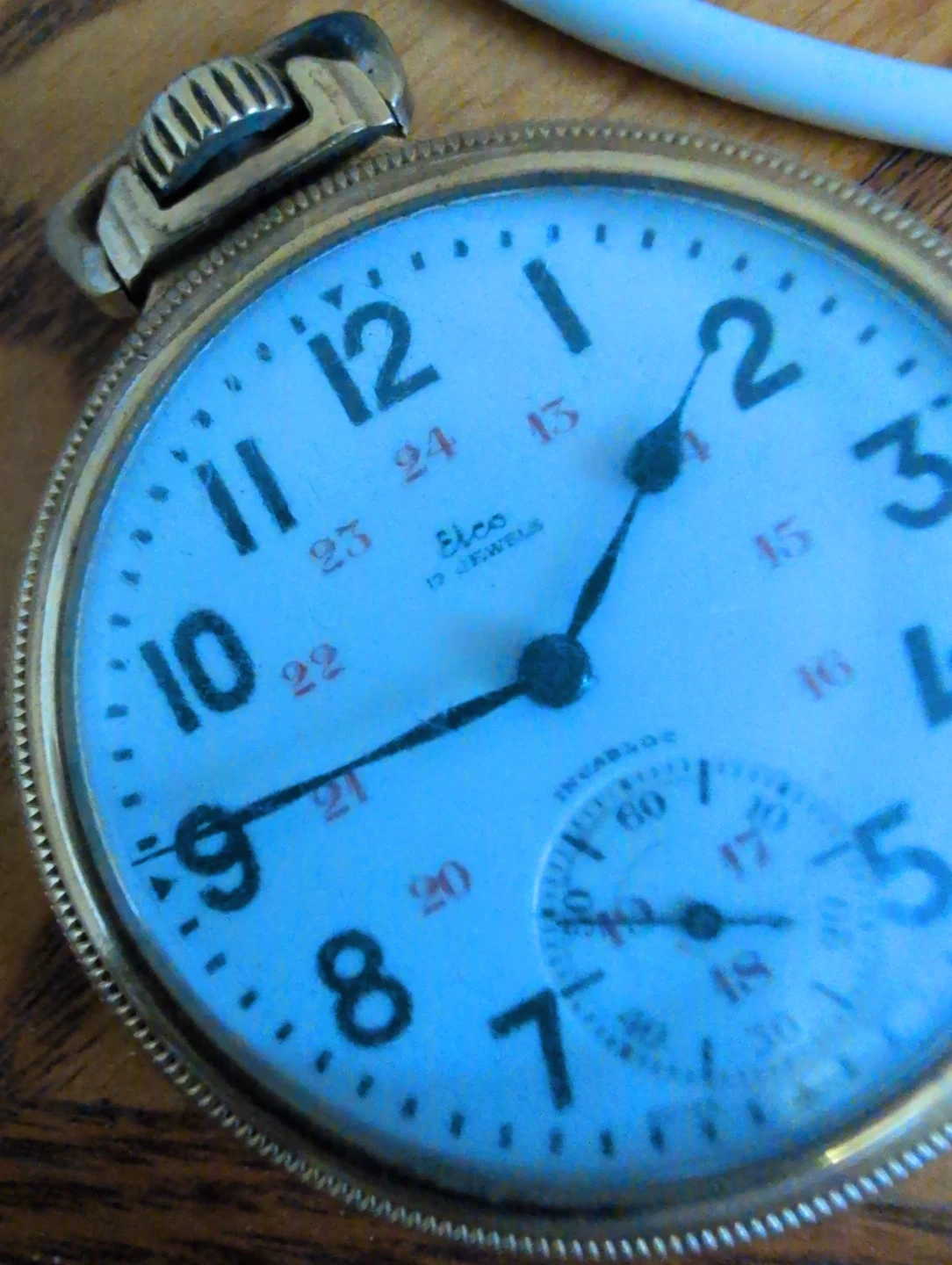 Buy & SellElco Pocket Watch - 17 JewelsElco Pocket Watch - 17 Jewels$150This Elco pocket watch features 17 jewels and a classic white dial. It has a small sub-dial for seconds.ConditionGoodBrandElcoWHERE TO MEETCheck LocationView MapSELLERverifiedMaksymMc Queen34224 reviews0 chats·0 favorites·4 viewsSEND CHAT TO SELLERHi Maksym! I’m interested in your listing.Hi Maksym! I’m interested in your listing.Get the Karrot app to chatSign In to chat