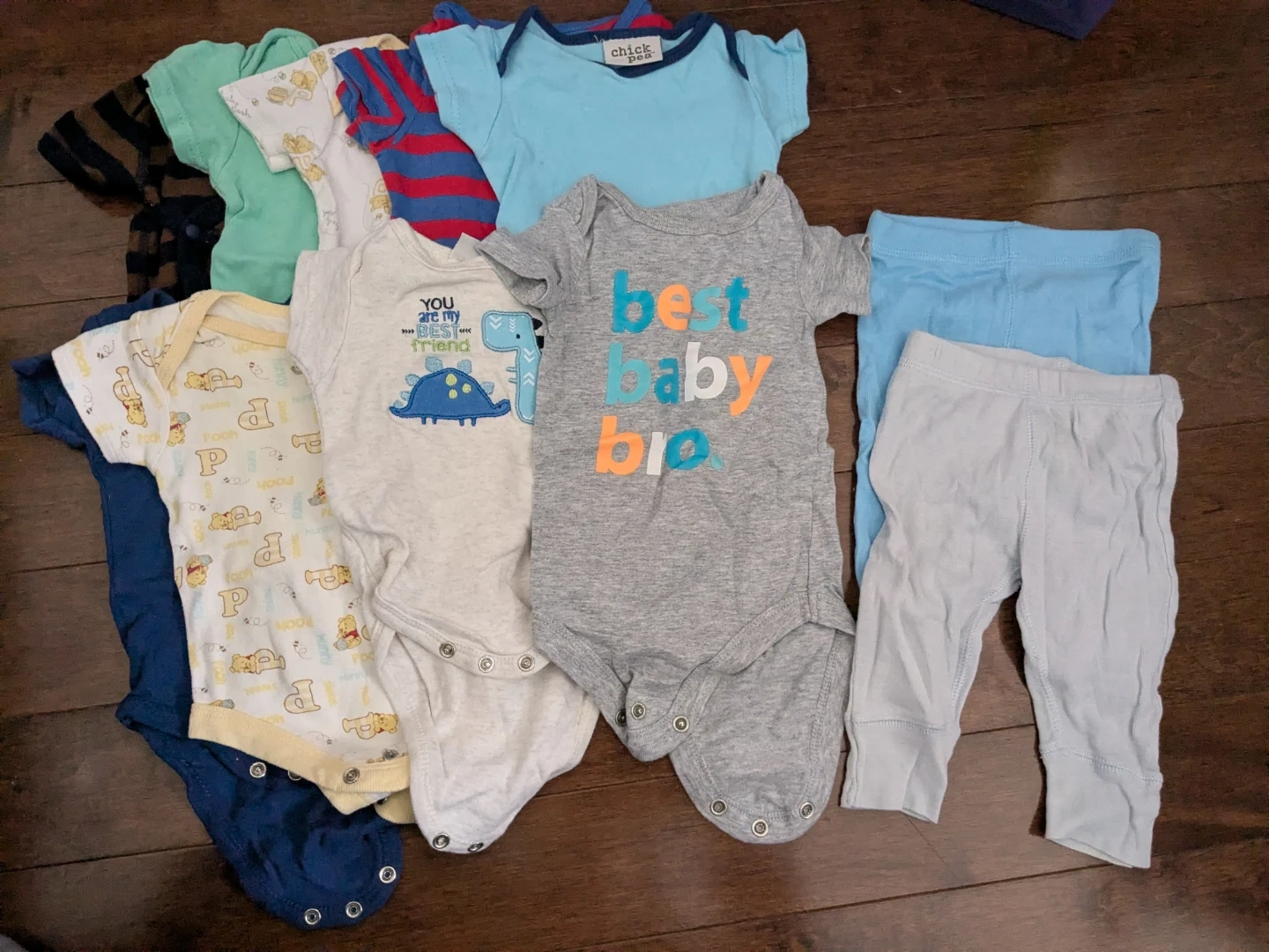 A cute bundle of baby clothes in size 0-3M! Includes onesies and pants in various colours and patterns. All in great condition and ready for a new little one