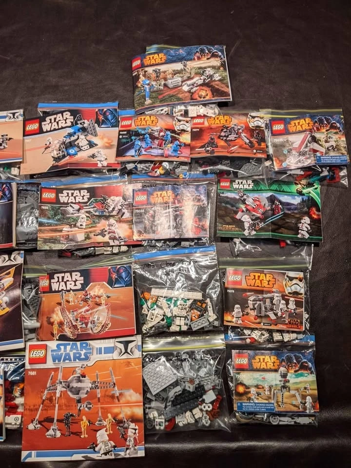 Selling various LEGO Star Wars sets. Unless otherwise noted, all sets come with their instruction booklet. No set has its original box. All sets have been put together then taken apart with their manuals to ensure none are missing pieces. If any sets are missing a piece, it has been noted. If you are buying multiple sets, we can work out a fair price. The whole lot is available for $1000.