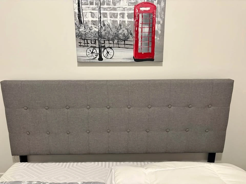 Moving sale! Used to stage house. Grey. Queen. 62.5”w x 2”d x 22.5” h (cloth part). I have 1 left. Please see my other ads for more furniture available for sale.