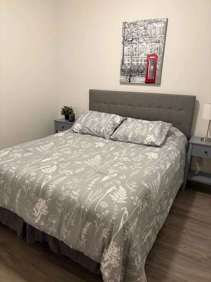 Moving sale! Used to stage house. Grey. Queen. 62.5”w x 2”d x 22.5” h (cloth part). I have 1 left. Please see my other ads for more furniture available for sale.