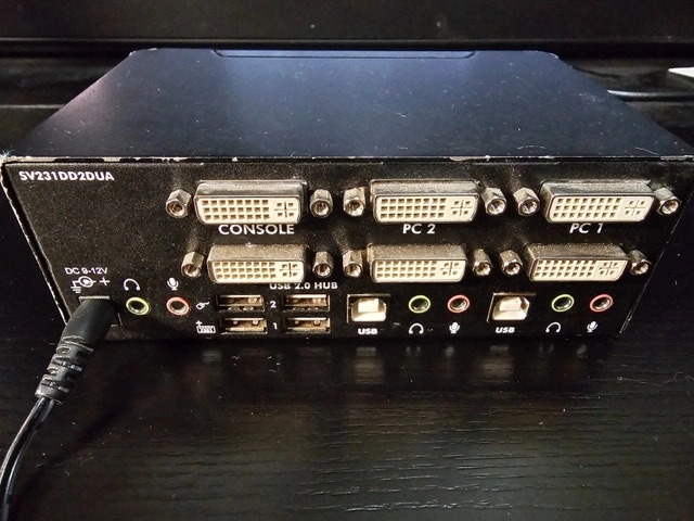 Selling a well used but fully functional StarTech SV231DD2DUA dual-monitor KVM switch — a rock-solid solution for controlling two computers with one keyboard, mouse, and dual monitors.