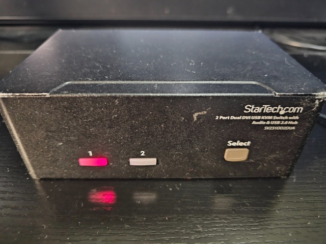 Selling a well used but fully functional StarTech SV231DD2DUA dual-monitor KVM switch — a rock-solid solution for controlling two computers with one keyboard, mouse, and dual monitors.