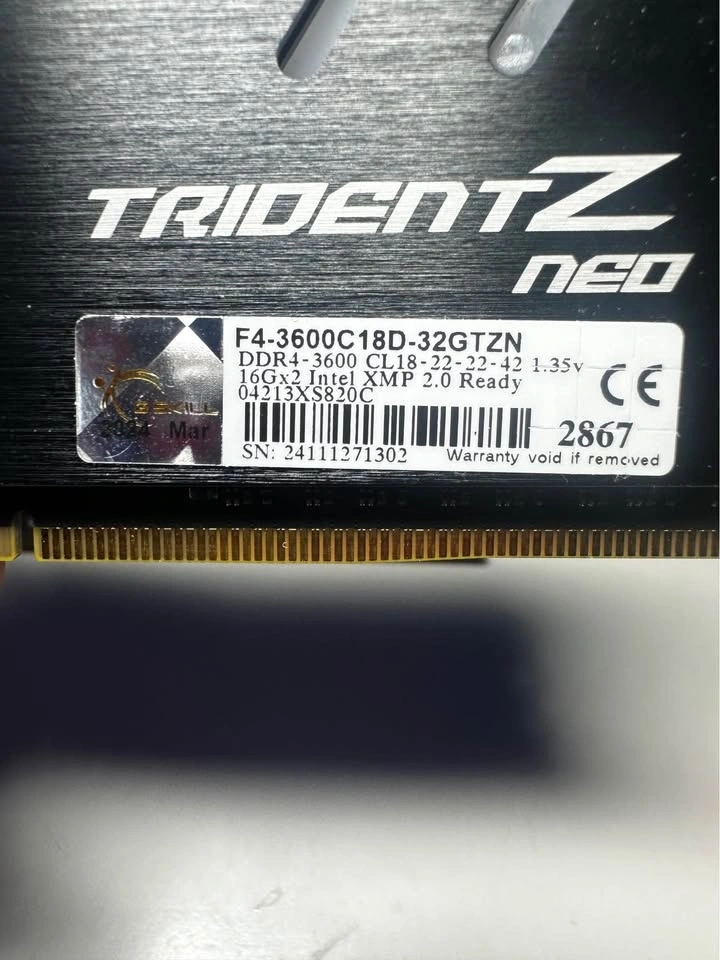 Buy & Sell32 GB 3600mhz DDR4 Memory - G Skill Trident Neo32 GB 3600mhz DDR4 Memory - G Skill Trident Neo$250Pristine condition. RGB lighting. High-speed performance (3600 MHz).WHERE TO MEETCheck LocationView MapSELLERcrownzkieHighland W250 reviews0 chats·0 favorites·1 viewsSEND CHAT TO SELLERHi crownzkie! I’m interested in your listing.Hi crownzkie! I’m interested in your listing.Get the Karrot app to chatSign In to chat