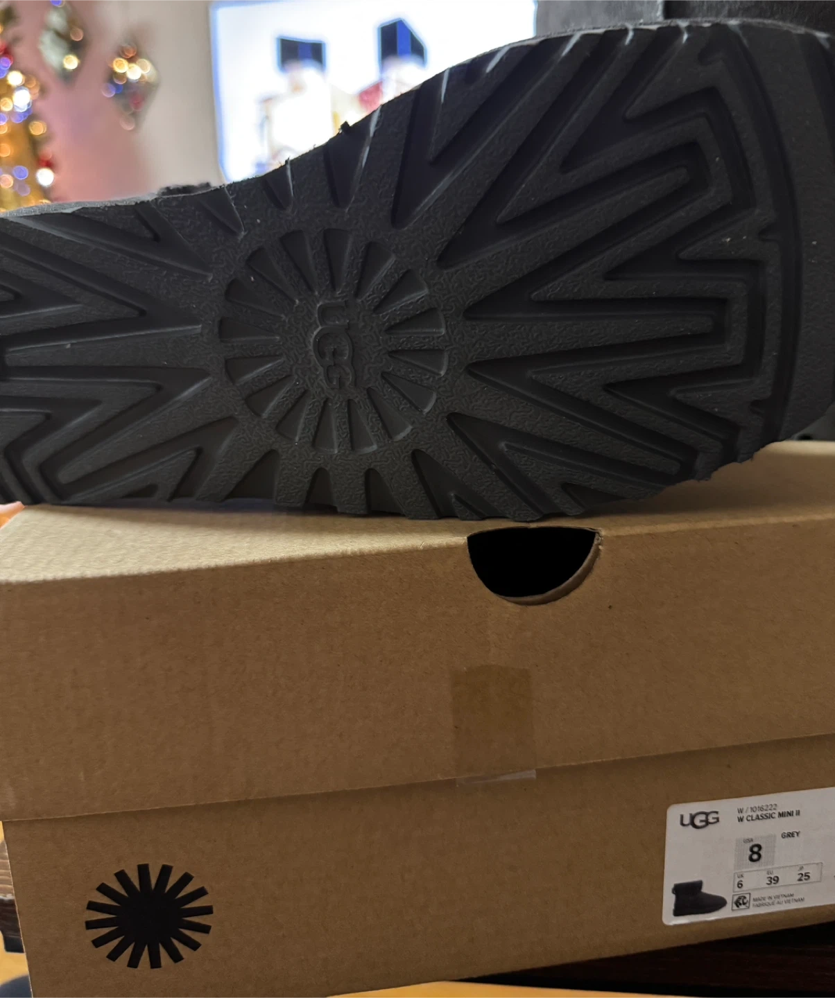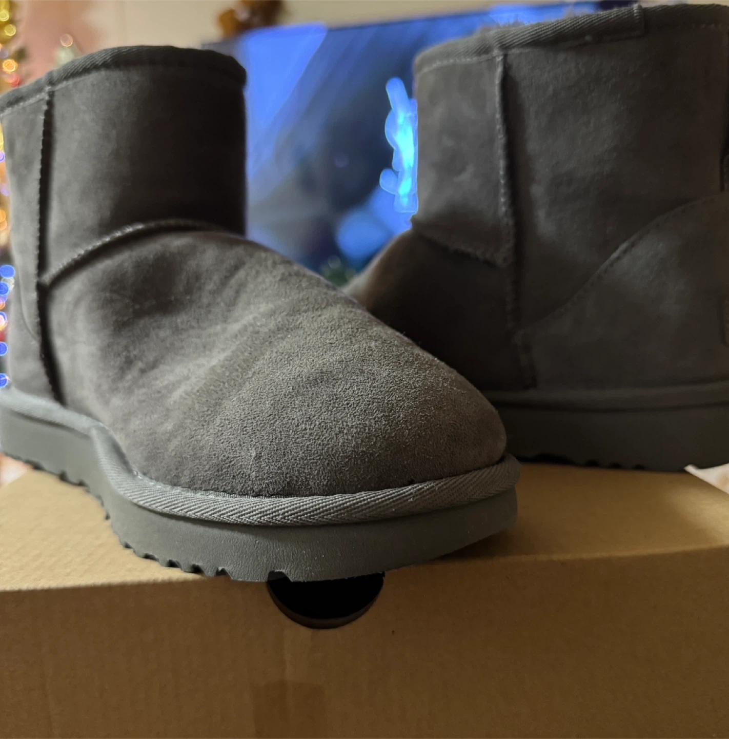 Selling a pair of UGG W Classic Mini II boots in grey, size 8. They are in great condition and come with the original box. These cozy boots are perfect for keeping your feet warm and stylish!