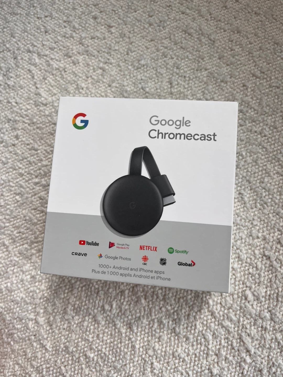 Stream your favourite shows and movies with this Google Chromecast. It supports many popular apps like YouTube, Crave, Netflix, and Spotify. Connect it to your TV for an enhanced viewing experience. Great for any home entertainment setup!