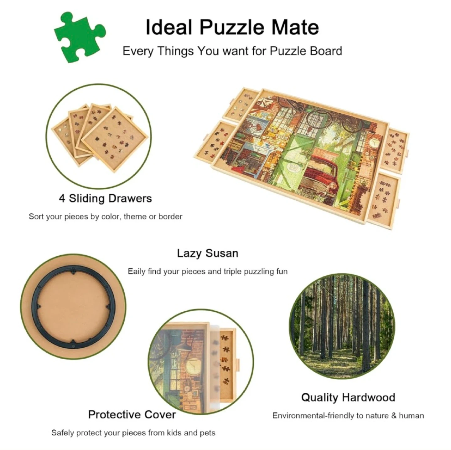 1500 Piece Rotating Puzzle Board with Drawers and Cover