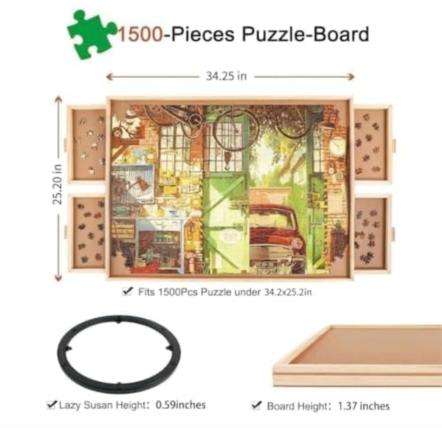 1500 Piece Rotating Puzzle Board with Drawers and Cover