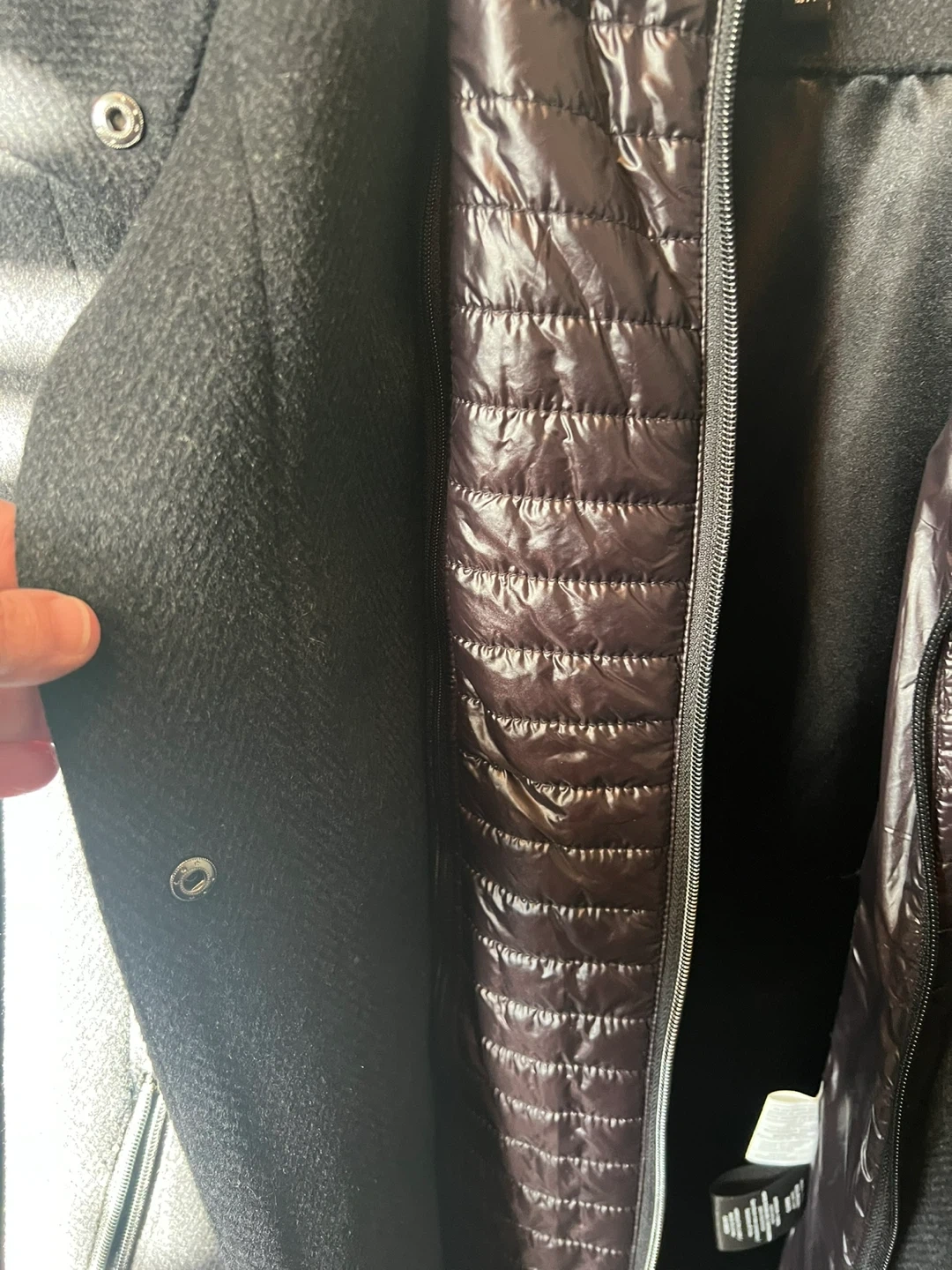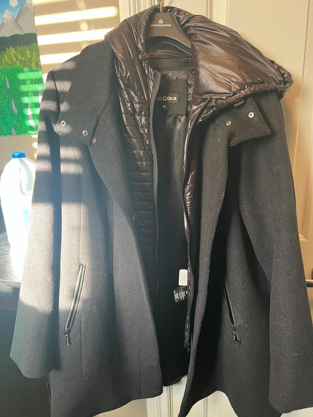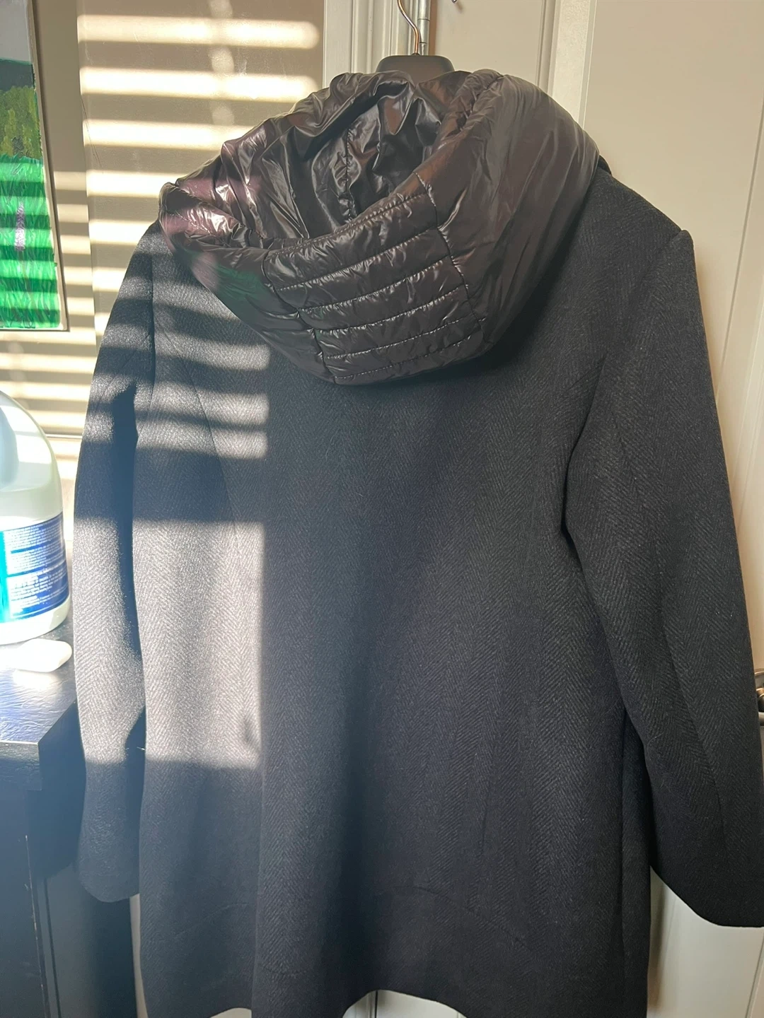 Women's Black Wool Blend Coat with Puffer Hood Size 2X