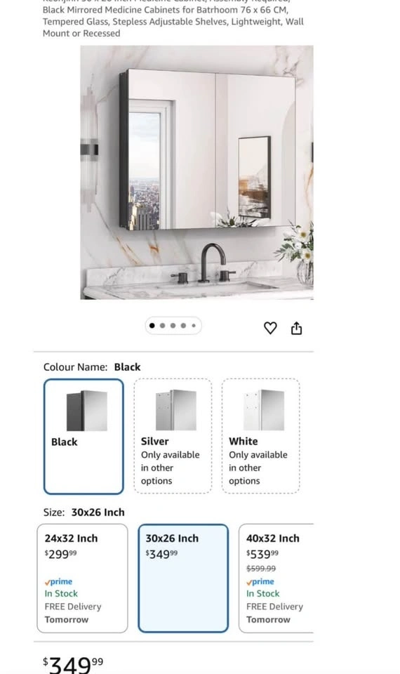 Black Mirrored Bathroom Medicine Cabinet – 76 × 66 cm