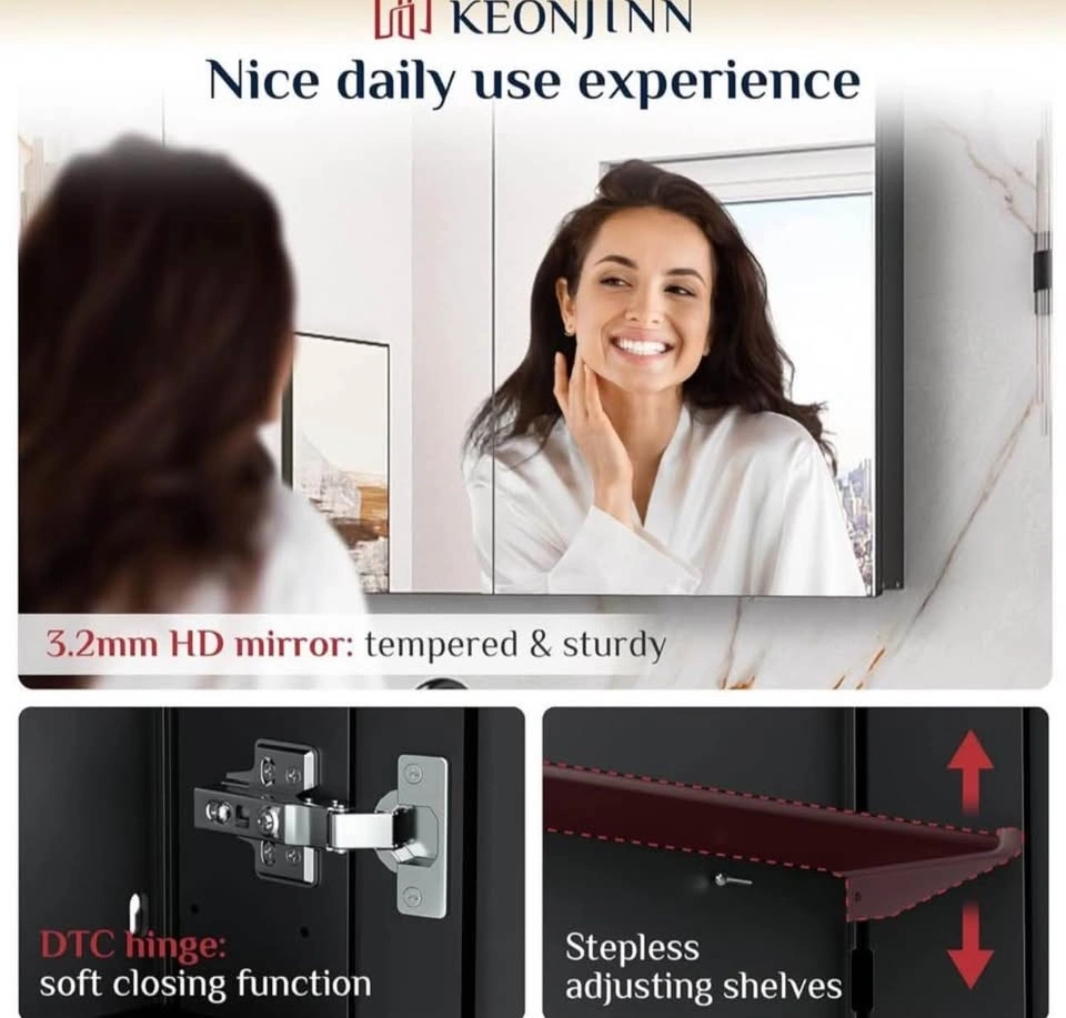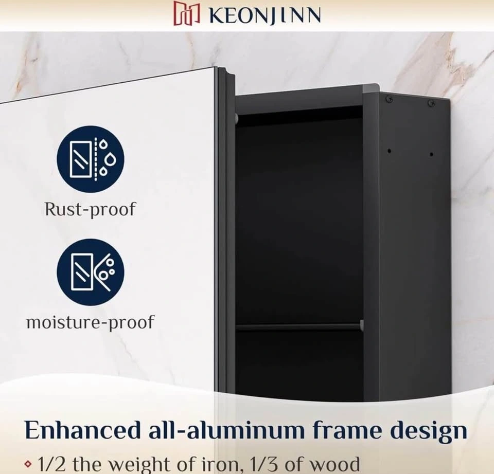 Modern black mirrored medicine cabinet for your bathroom. Features tempered glass with adjustable shelves for flexible storage. This cabinet is lightweight and can be wall-mounted or recessed. Stylish and practical for any bathroom setup. Size: 76 × 66 cm. Black mirrored finish. Tempered glass. Adjustable shelves. Lightweight and durable. Wall mount.