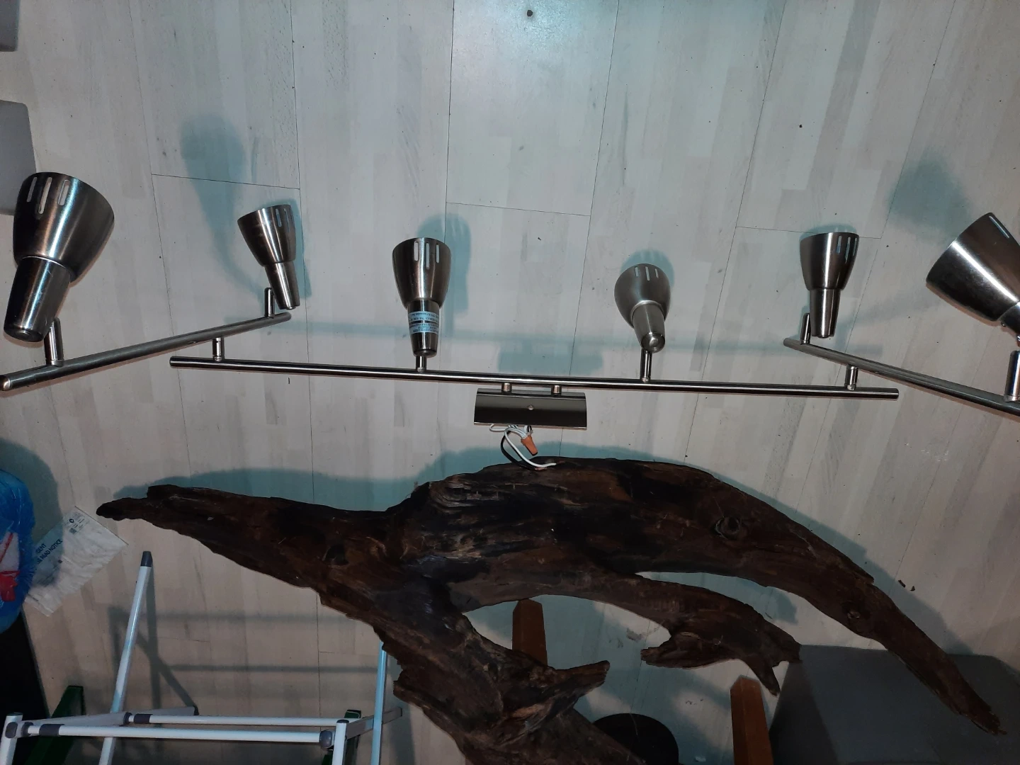 This is a 5-light track lighting fixture with adjustable heads. It's made of brushed nickel-look metal. This fixture is suitable for illuminating various areas in your home.