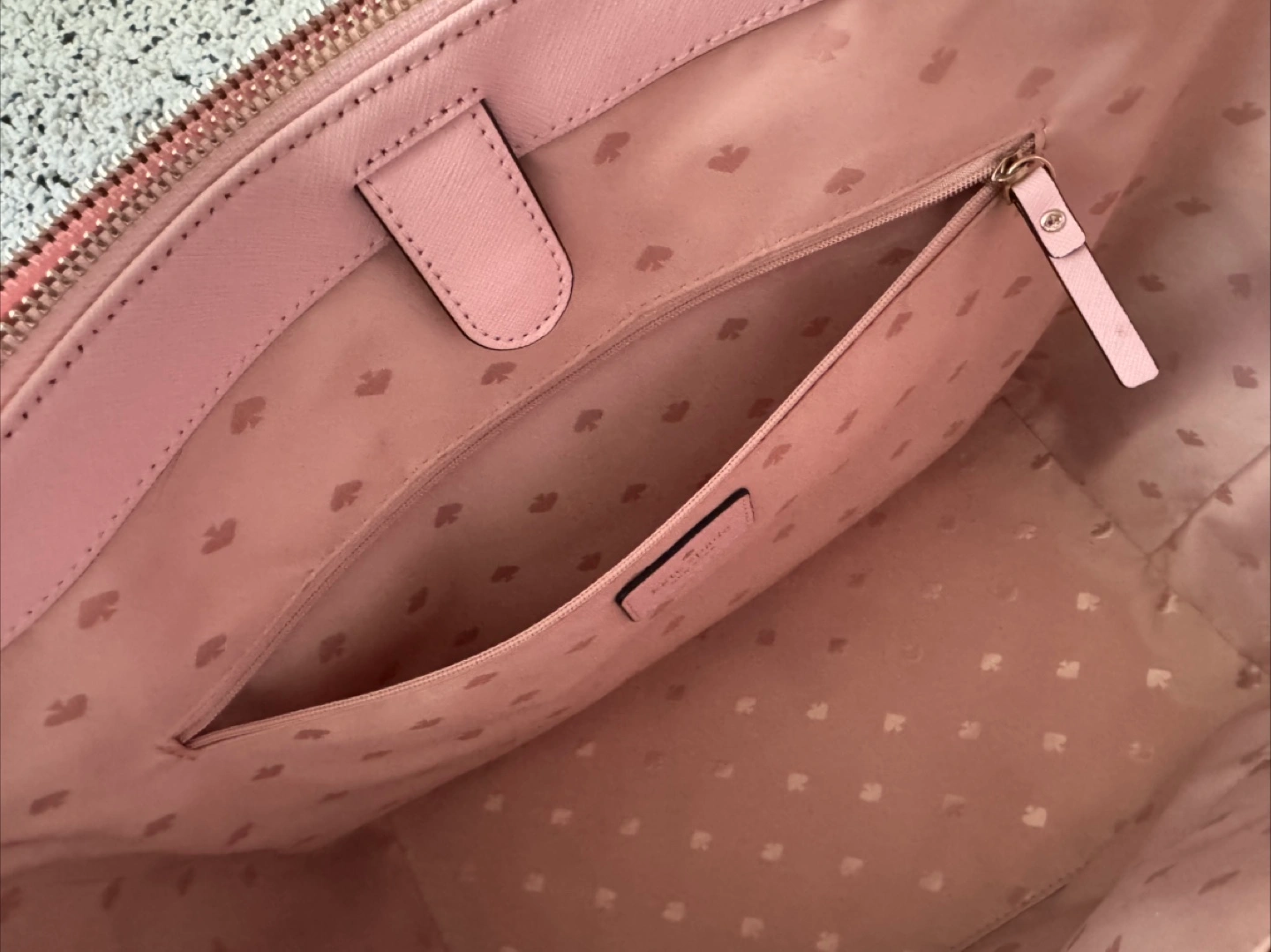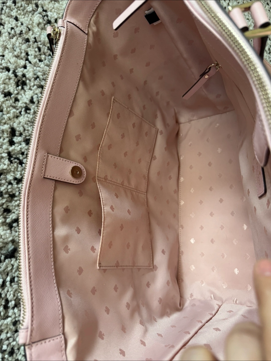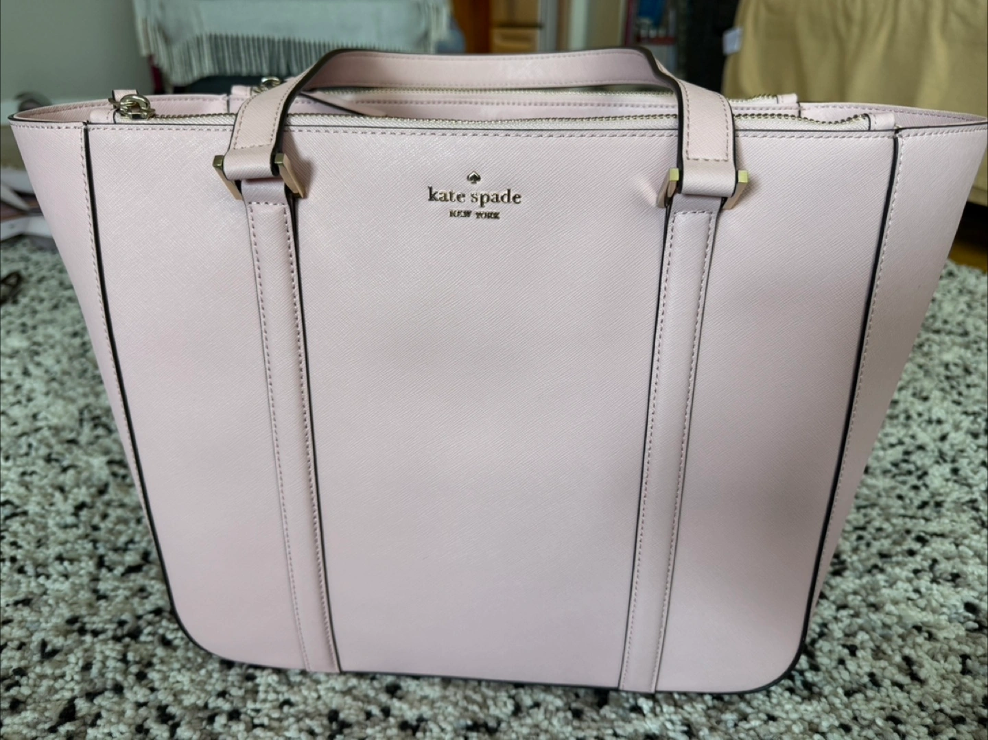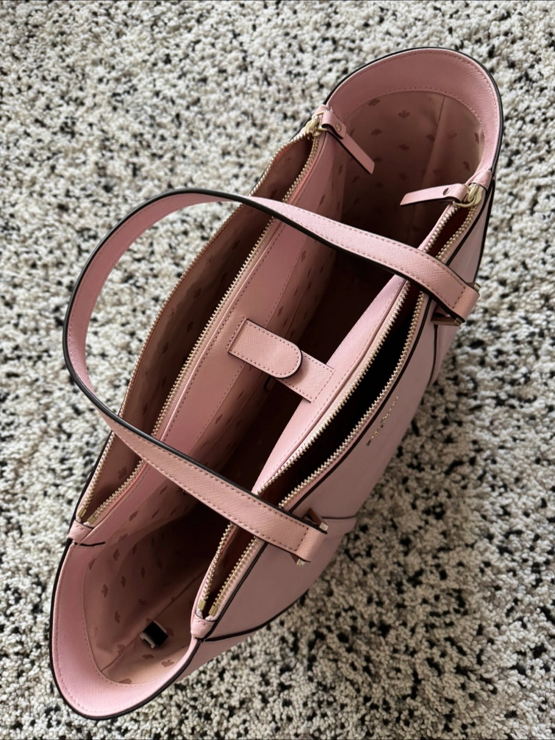 Large pink tote bag. Saffiano leather. No scratches, new. Top zip closure. Interior zip pocket and slip pocket. Double top handles. Excellent condition. It was a present but it is not really my style. Never used. Original price is almost $600
