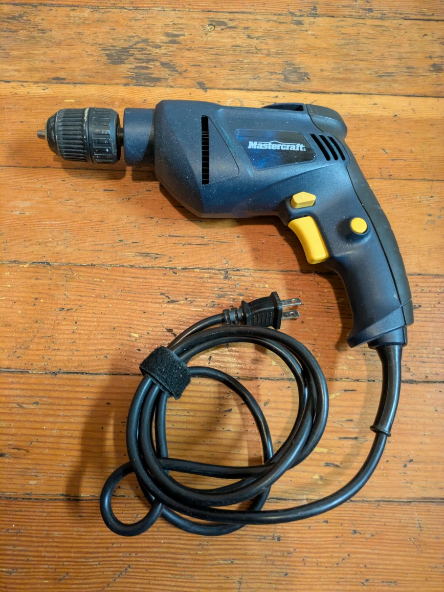 Selling a Mastercraft corded drill in good condition. It's blue with yellow accents.