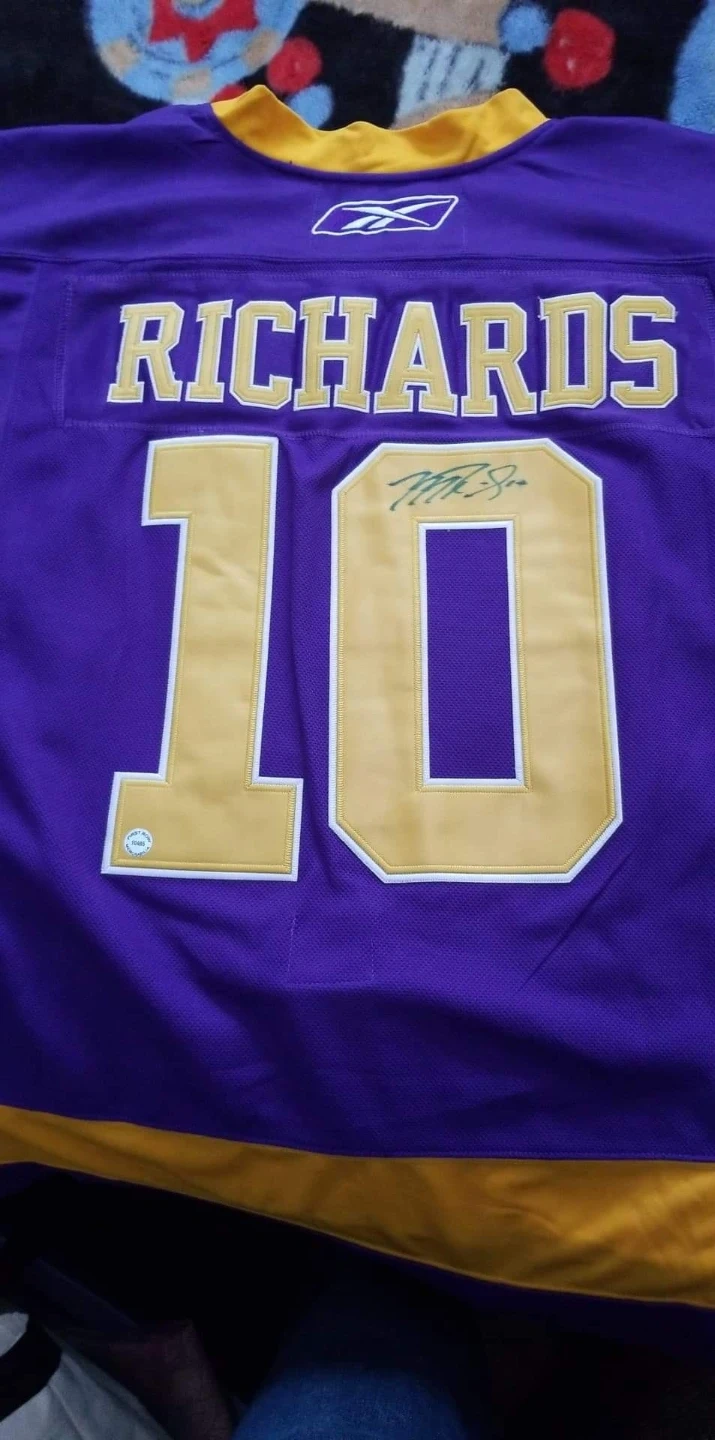 This is a purple Reebok Mike Richards Los Angeles Kings jersey. It's size medium and features the number 10 on the back. The jersey is in good condition, ready for any fan to wear! Worn one time.