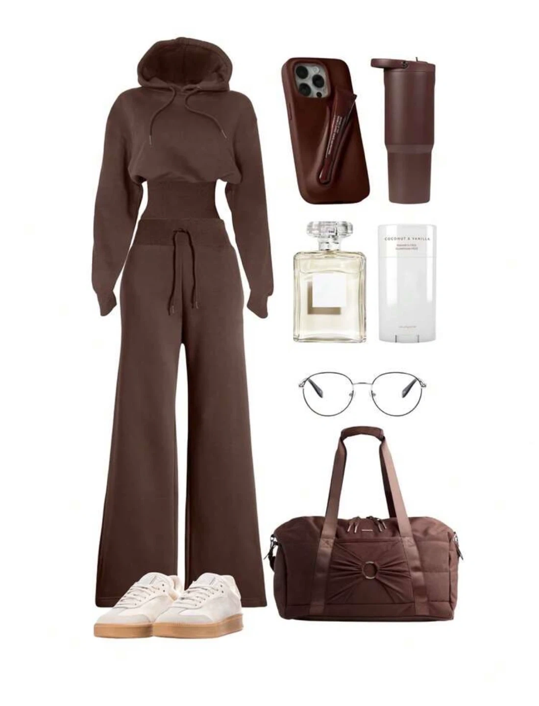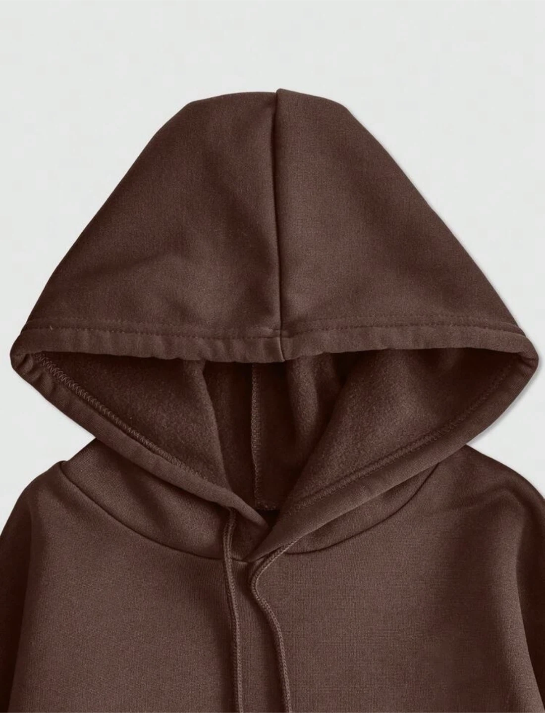 New 2pcs Brown Set Hooded Sweatshirt and Wide Leg Sweatpants