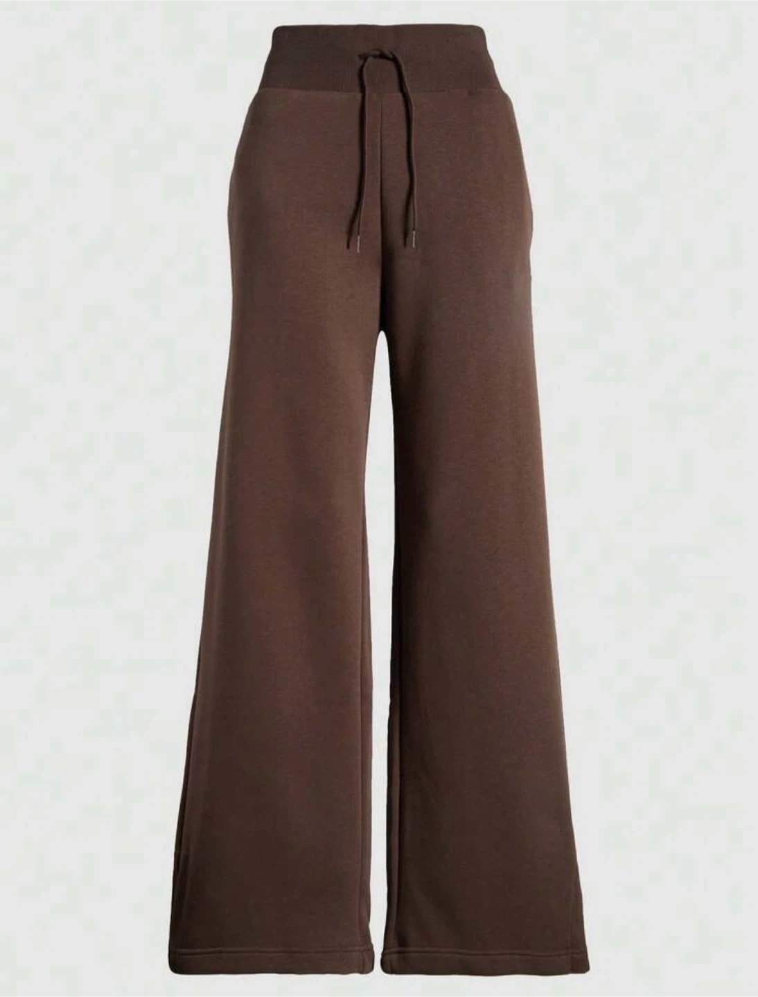 New, unworn set in a rich brown hue. Size M. It's a hooded sweatshirt with a cinched waist and matching wide leg sweatpants with a drawstring.