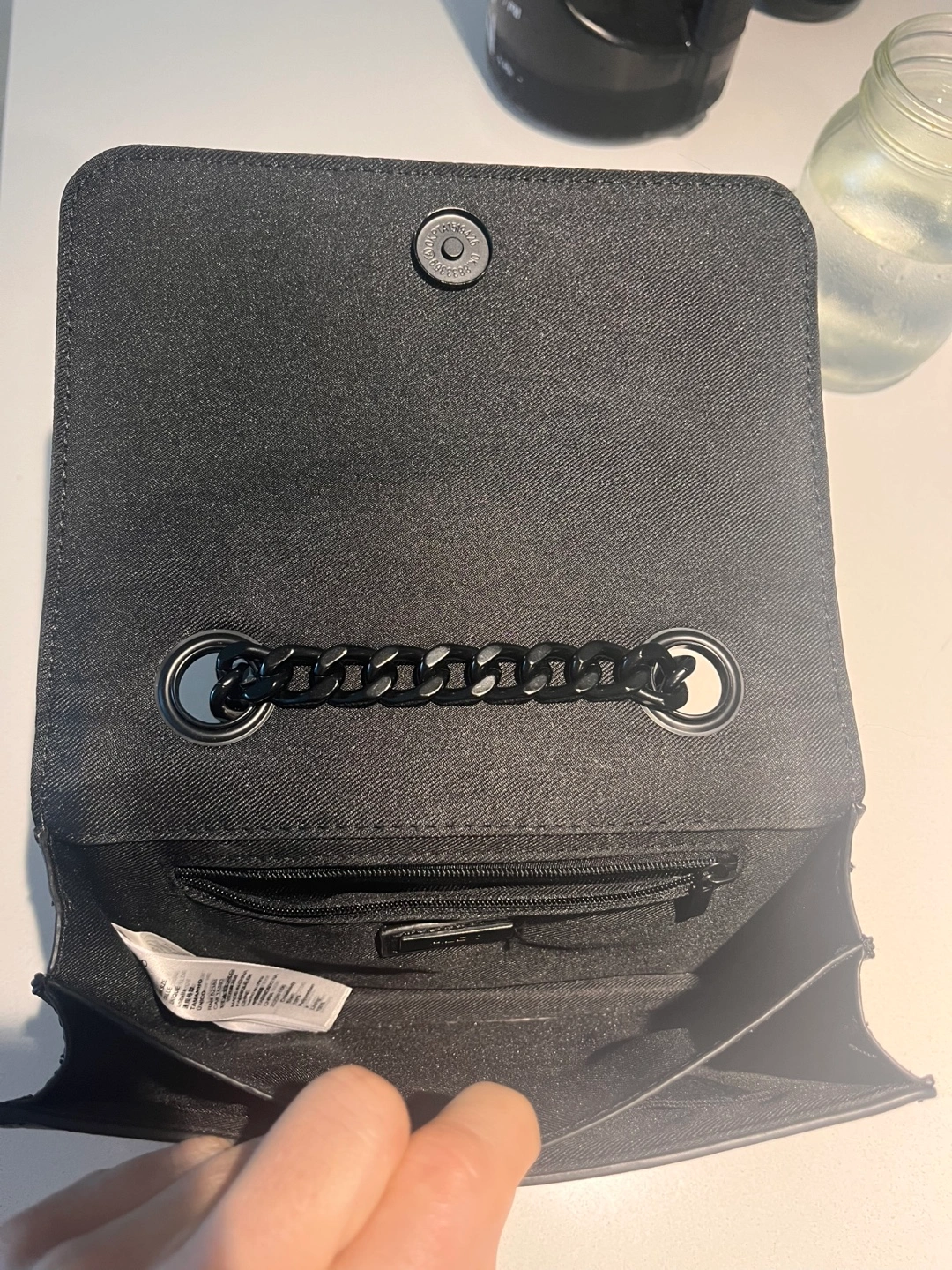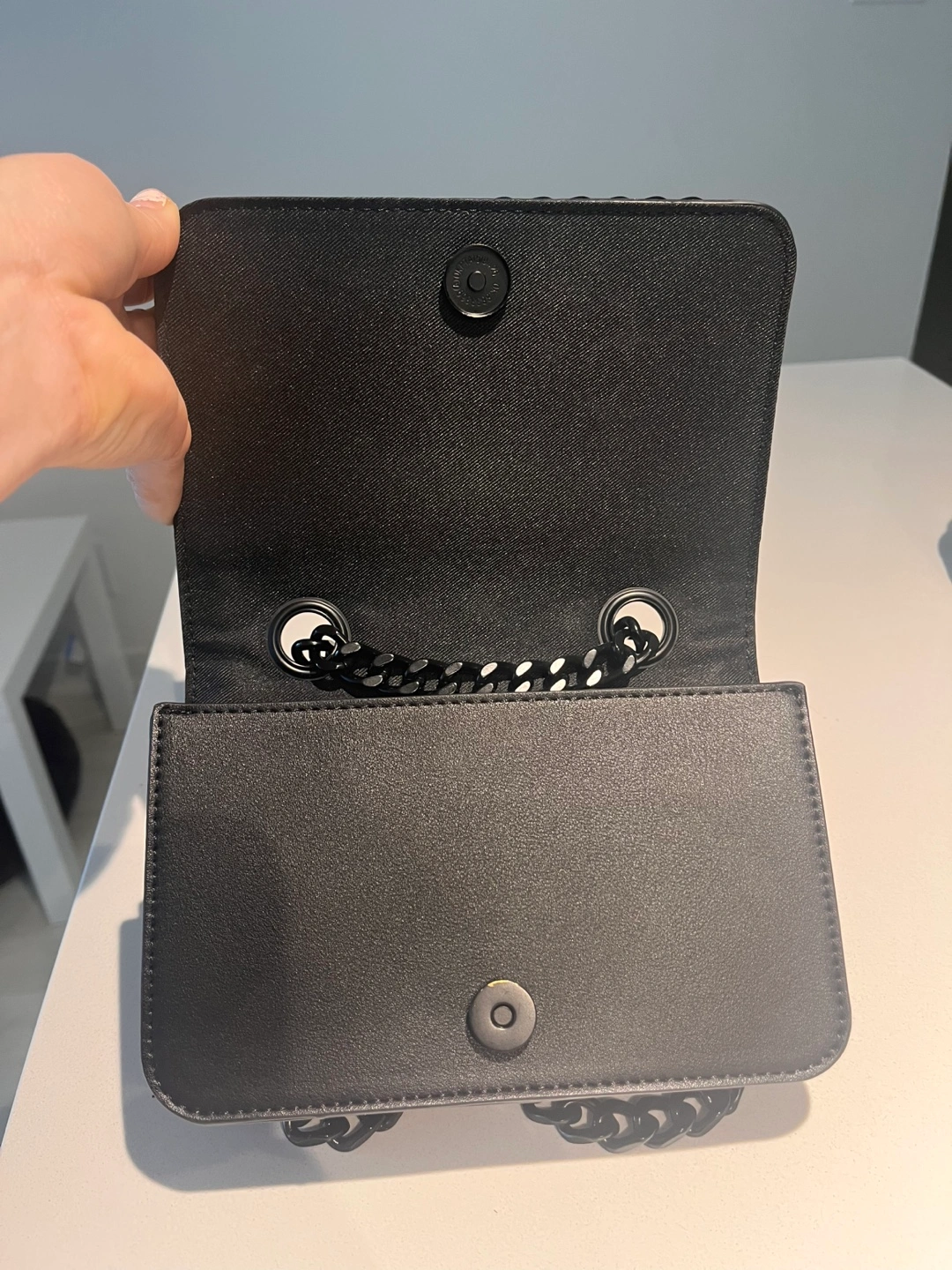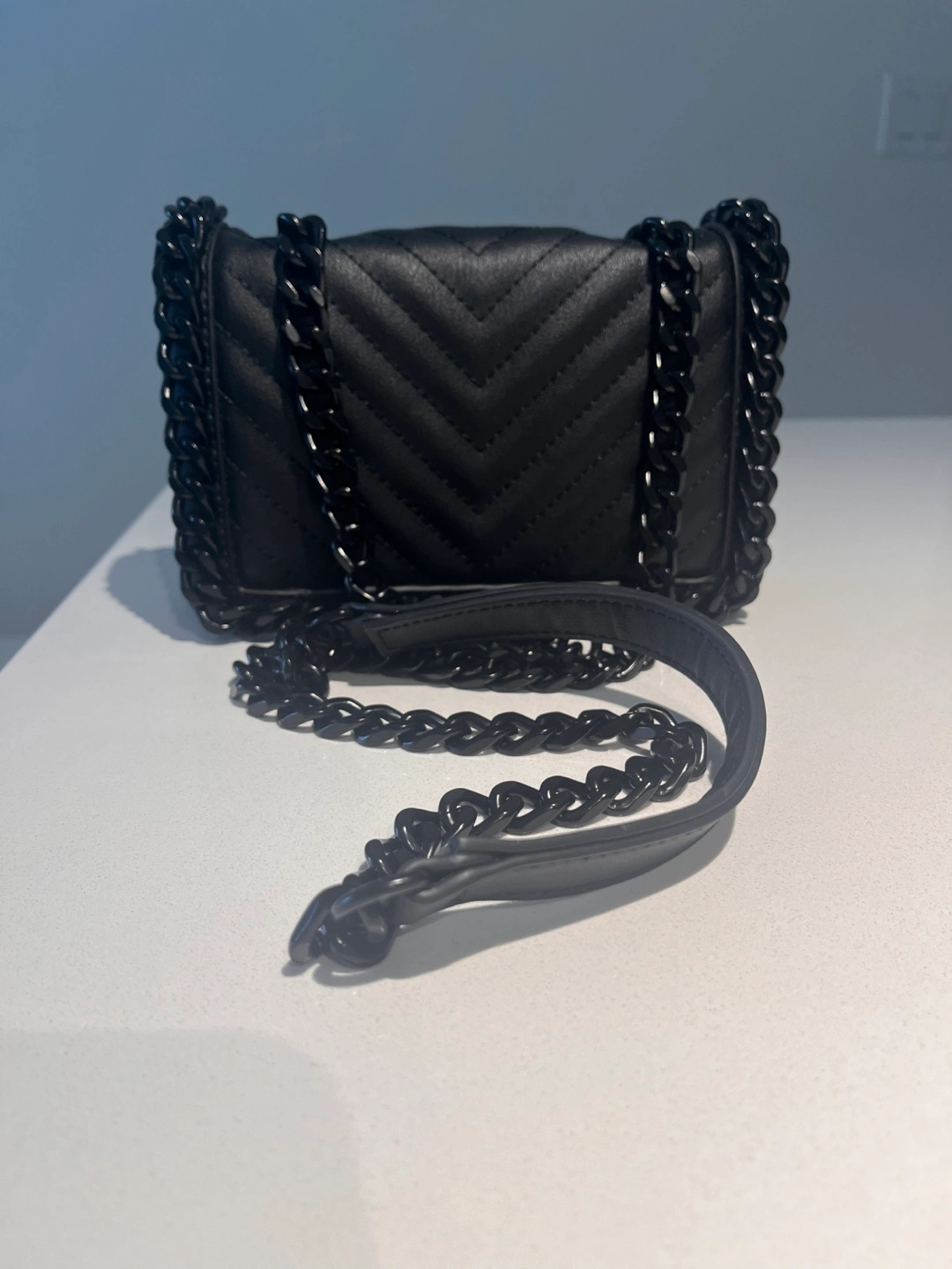 This is a stylish black crossbody bag from ALDO! It features a chain strap and a sleek design. It's in great condition and perfect for everyday use