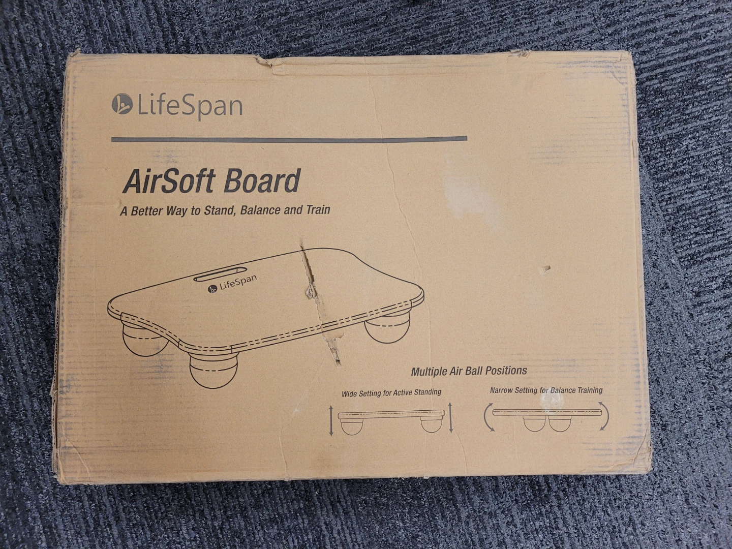 This is a LifeSpan AirSoft Board for standing, balance, and training. It offers multiple air ball positions for active standing or balance training. It's great for improving core stability!