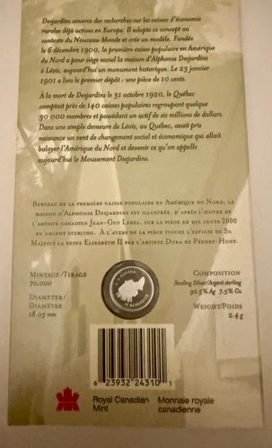 Canada 2000 Sterling Silver 10 Cents Desjardins 100th Anniversar