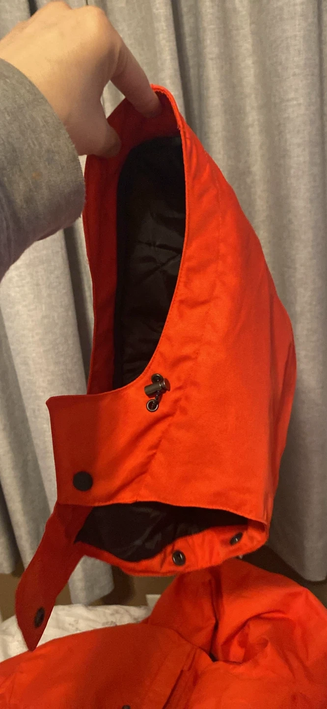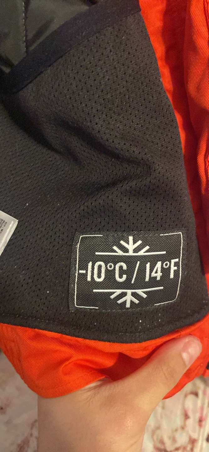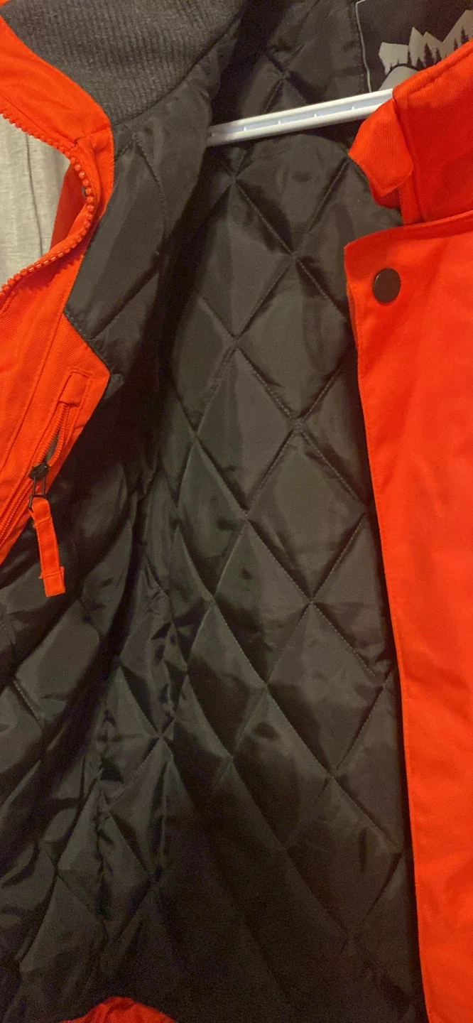 Bright orange QUECHUA jacket here! Has cool pockets with flaps and zippers. Super comfy for outdoor stuff, ski trips, or just staying warm.