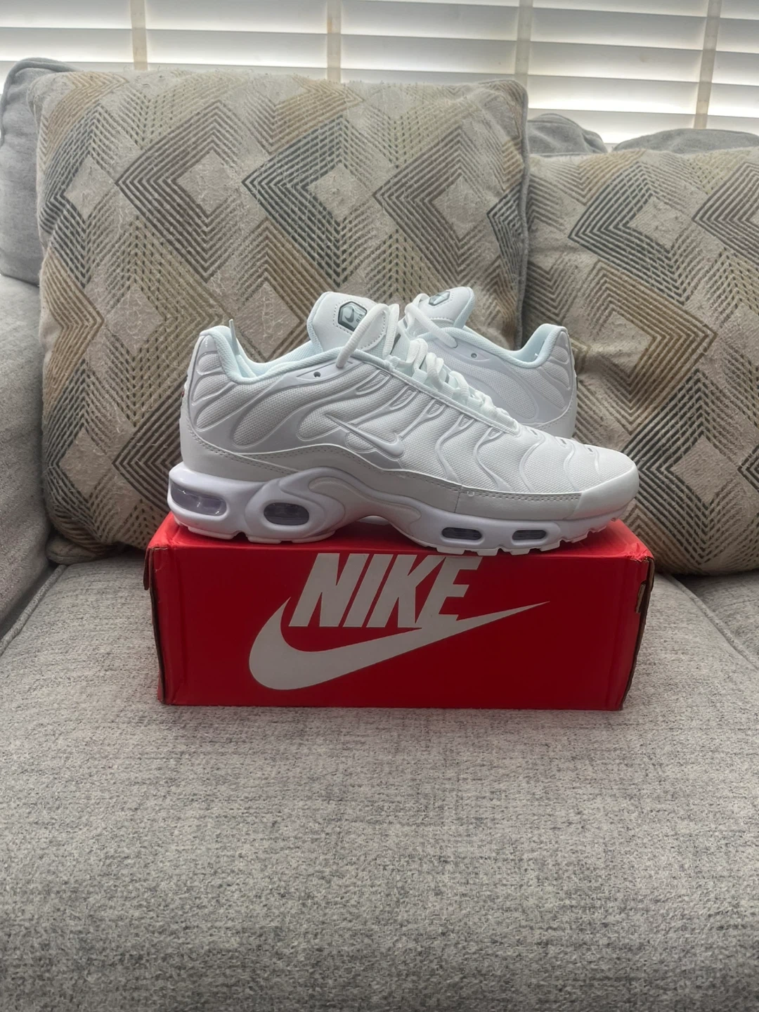 These Nike Air Max Plus TN SE sneakers are a crisp all-white colourway. They come with the original Nike box. These shoes are great for everyday wear!
