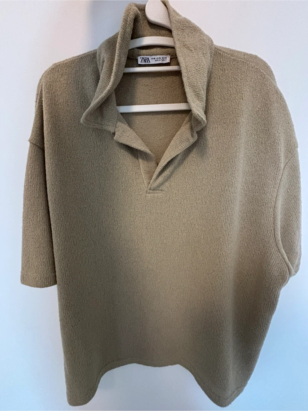 Cozy Zara knit polo shirt in size XL! It's a neutral colour, perfect for layering or wearing on its own. It's in great condition.