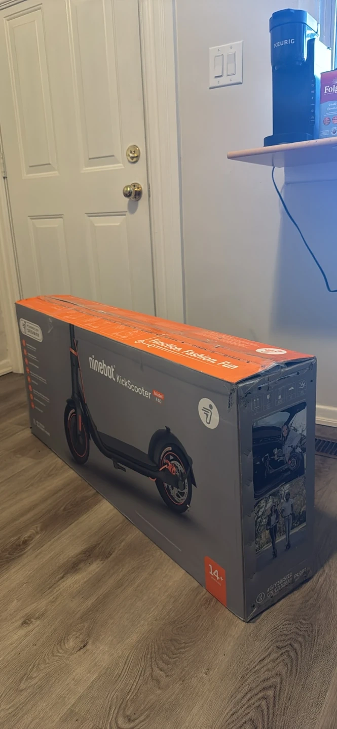 Ninebot electric scooter by Segway. This scooter still has its box and all of its parts. Used very briefly, perfect condition.