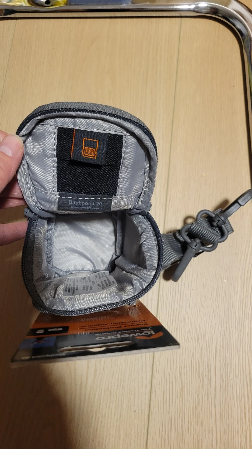 This is a Lowepro Dashpoint 20 camera pouch in grey. It offers impact protection for your gear. Pouch measures 7.5 x 6 x 12.3 cm.
