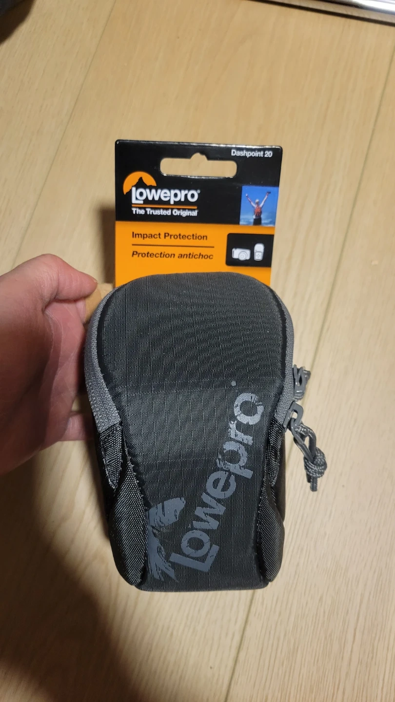 This is a Lowepro Dashpoint 20 camera pouch in grey. It offers impact protection for your gear. Pouch measures 7.5 x 6 x 12.3 cm.