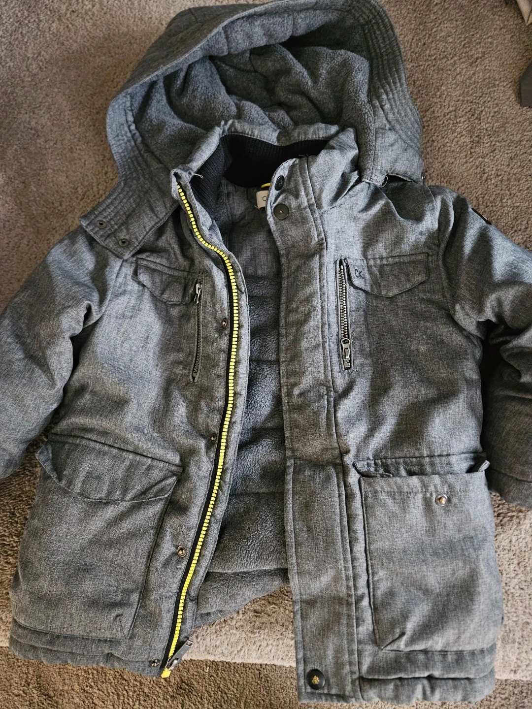 Selling a bundle of kids winter wear! Included is a Calvin Klein jacket size 5 in grey, and a few pairs of snow pants. The snow pants are in used condition. $10 each