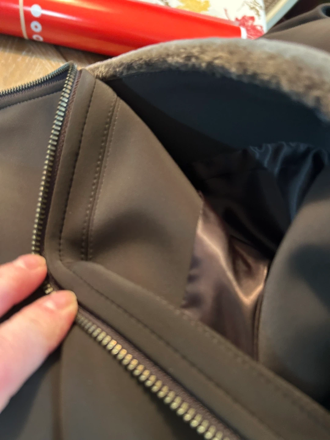Selling a men's XL dark brown Danier winter jacket. It's in great condition and perfect for the cooler weather. The jacket features a zipper and button closure, along with zippered pockets both on the outside and inside lining. The inside lining is genuine sheep fur and is removable.