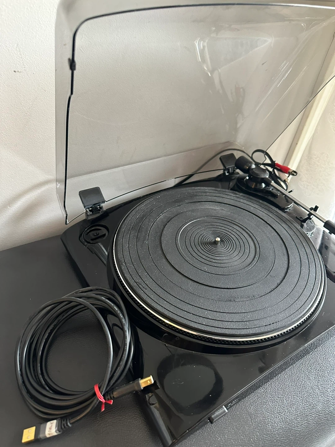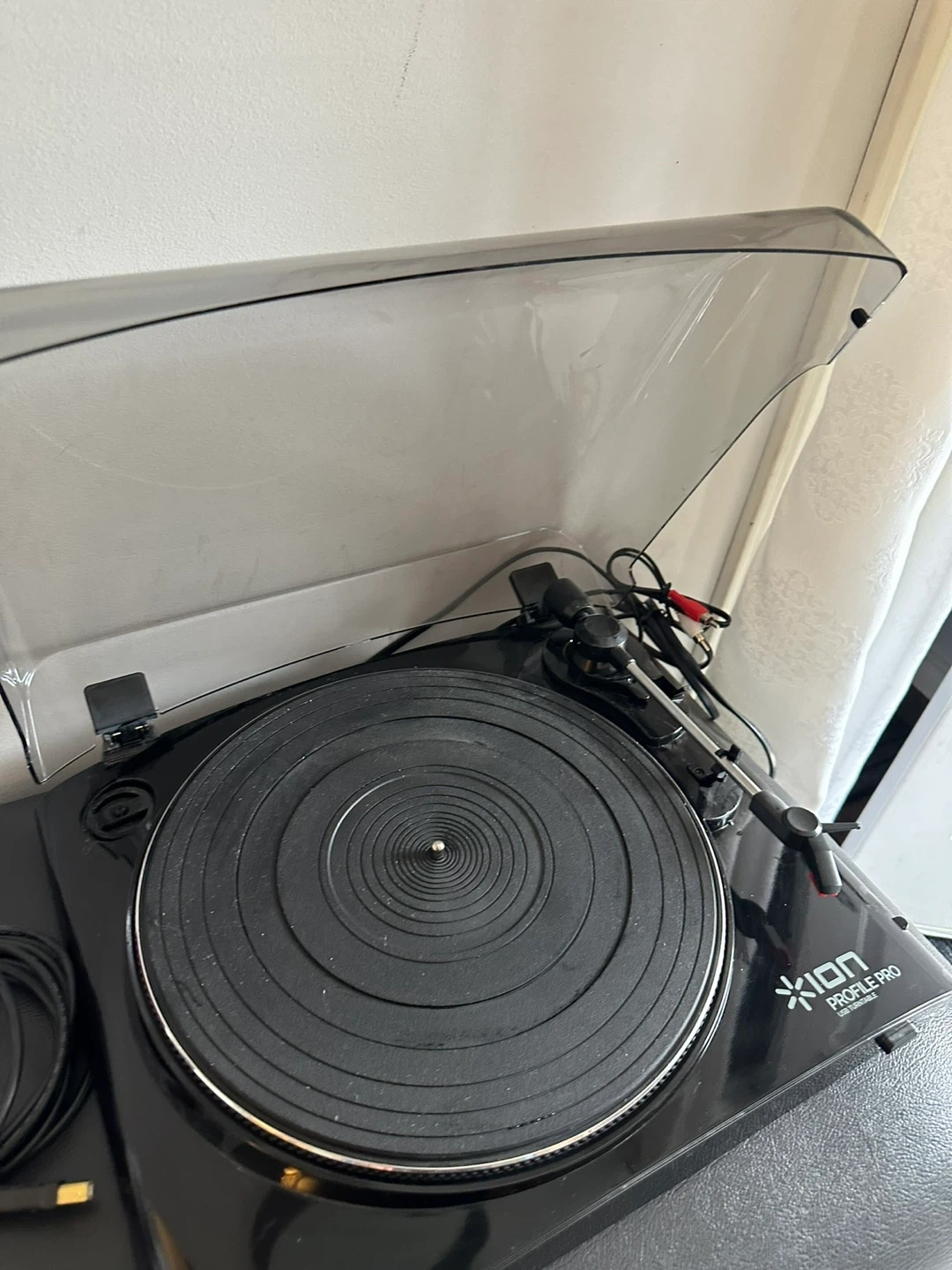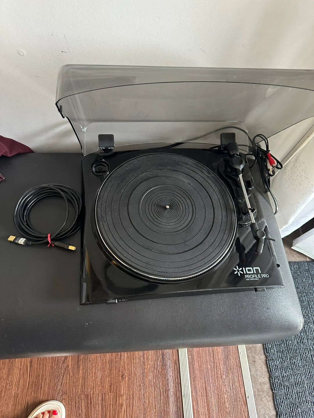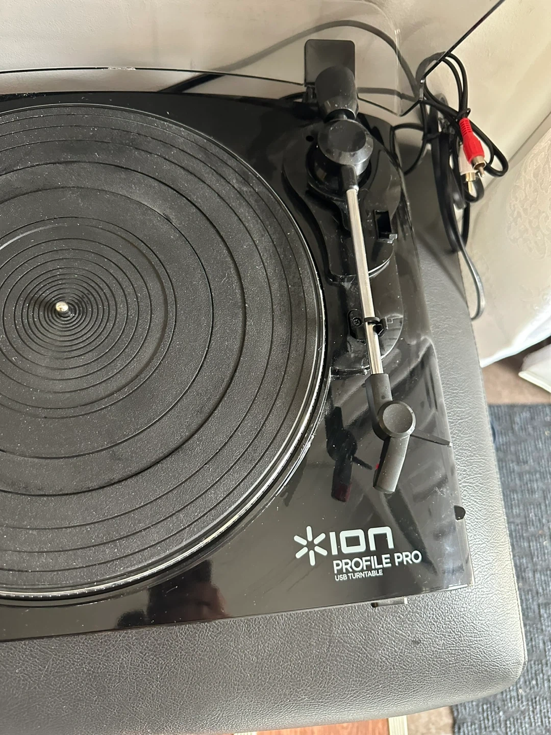 This ION Profile LP USB turntable lets you transfer vinyl to MP3. It's in black and comes with its USB cable. Great for digitizing your record collection!