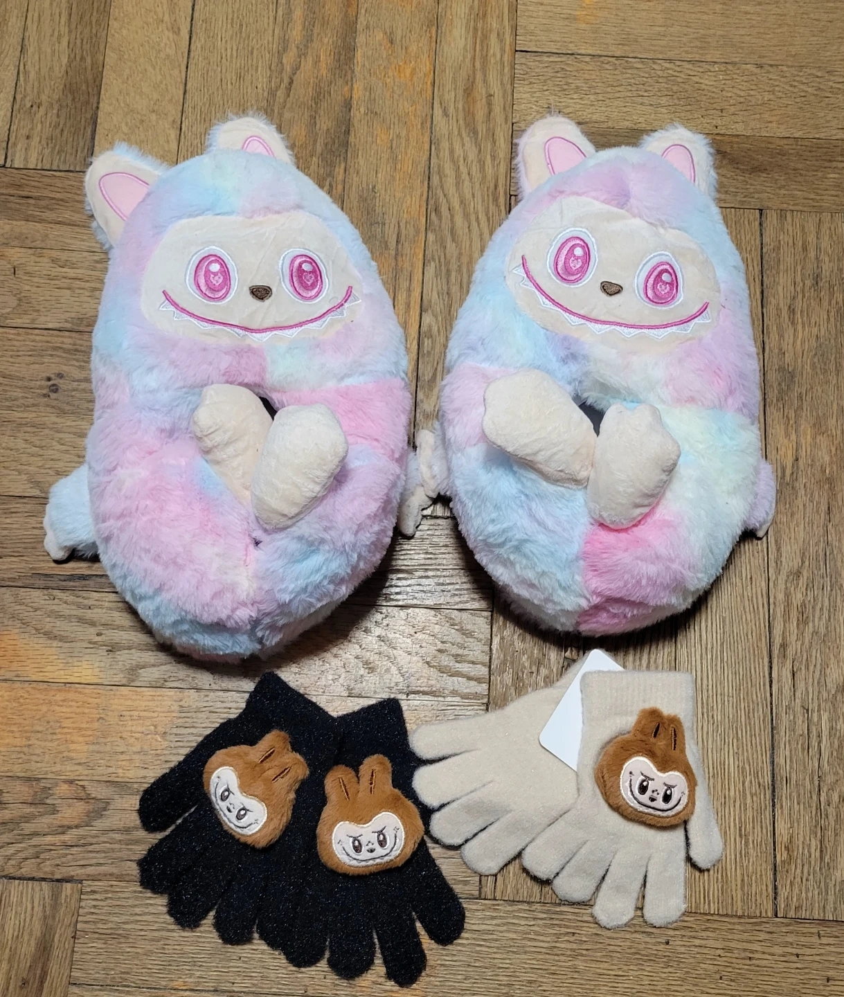 Fuzzy Labubu Slippers & Labubu Gloves Set