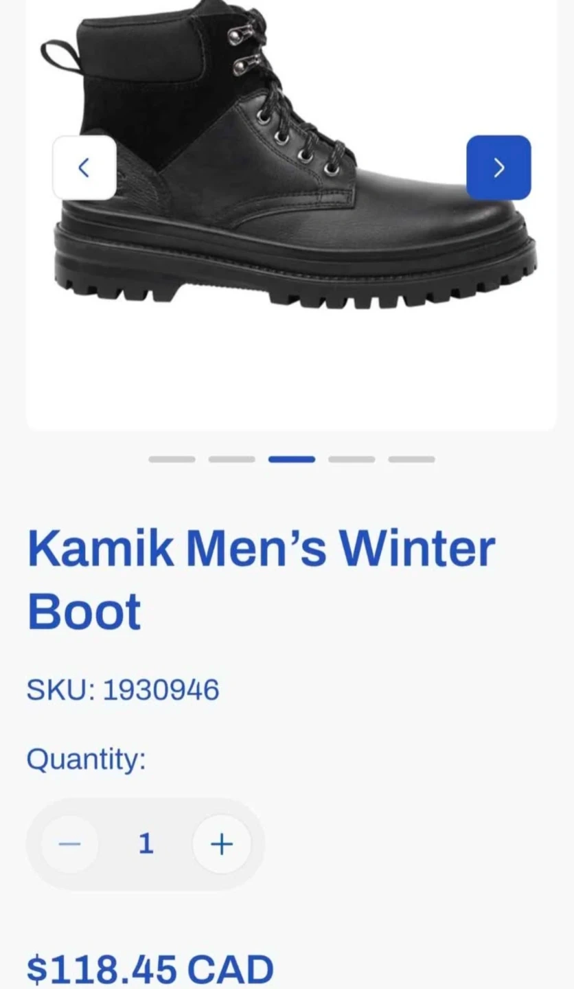 Buy & SellBrand New Kamik Men Black Boot Size 8 , 9 , 11, 12 ,13 *DEAL*Brand New Kamik Men Black Boot Size 8 , 9 , 11, 12 ,13 *DEAL*$45( only few left) Brand New Kamik Men Black Boot Size 8 , 9 , 11, 12 ,13 *REAL DEAL*WHERE TO MEETCheck LocationView MapSELLERMikeWestmere291 review0 chats·0 favorites·5 viewsSEND CHAT TO SELLERHi Mike! I’m interested in your listing.Hi Mike! I’m interested in your listing.Get the Karrot app to chatSign In to chat