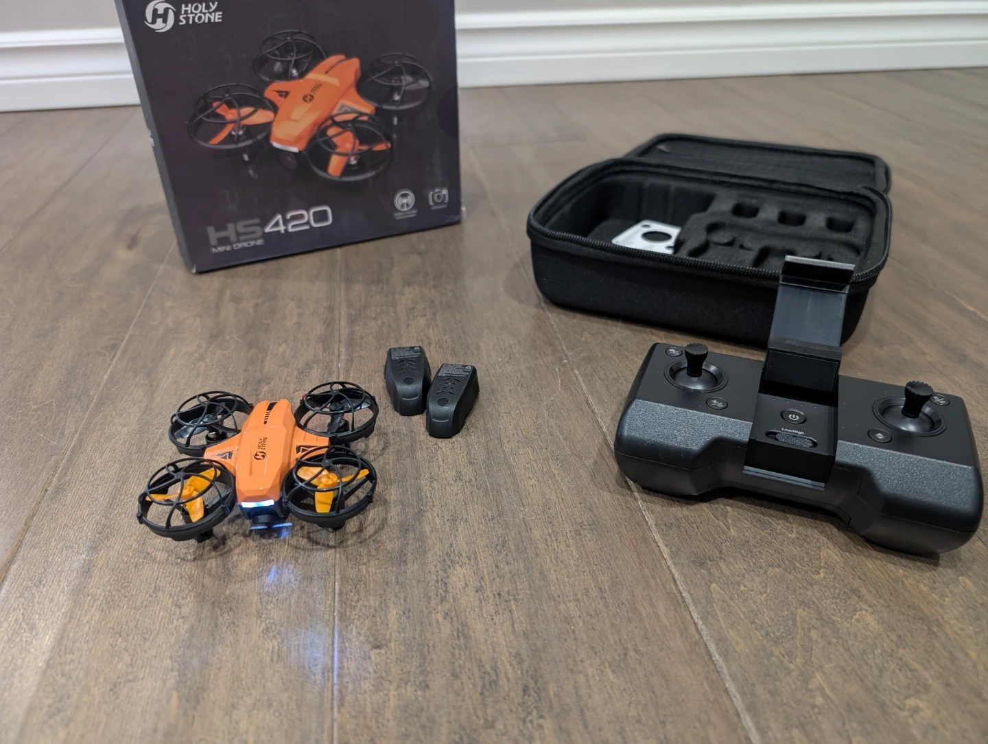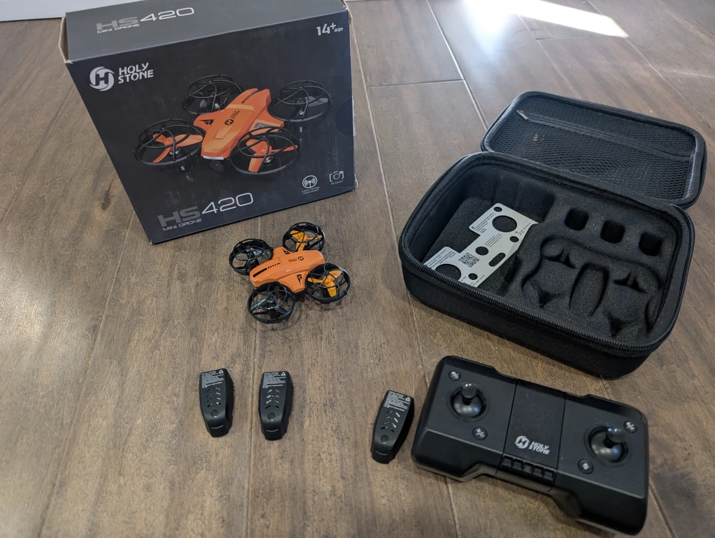 Brand new Holy Stone HS420 mini drone for sale. 1080p HD FPV camera, pocket RC quadcopter, 3 batteries, carrying case, gesture selfie, altitude hold, 360 flips, circle fly, great toy and gift. $50 FIRM.