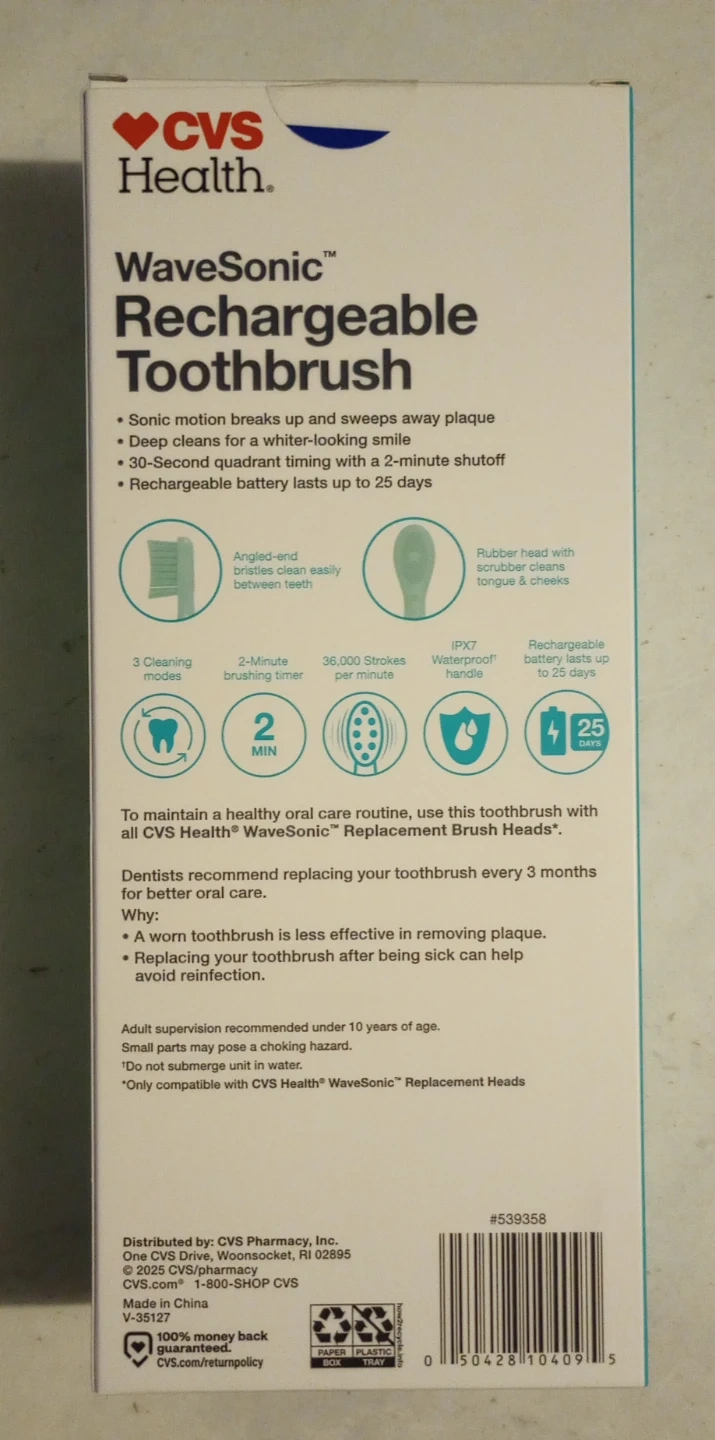 WaveSonic Rechargeable Toothbrush - 2 for $15
